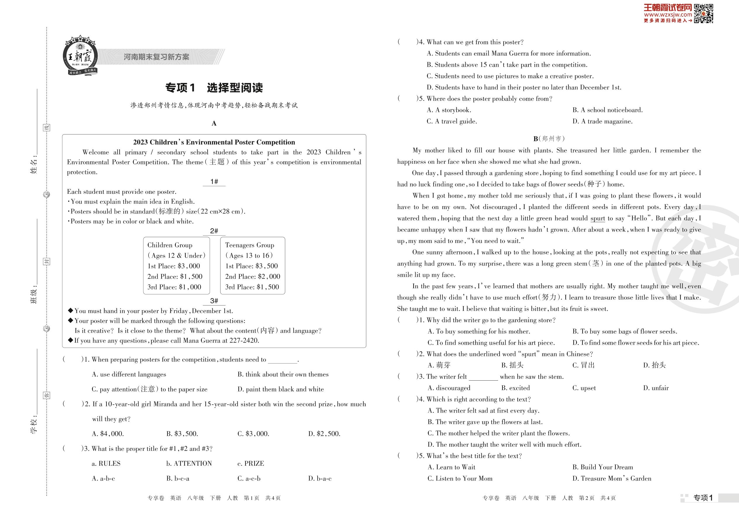 王朝霞期末专项卷——选择型阅读八年级下册英语(人教版)_R230426170104434【1】