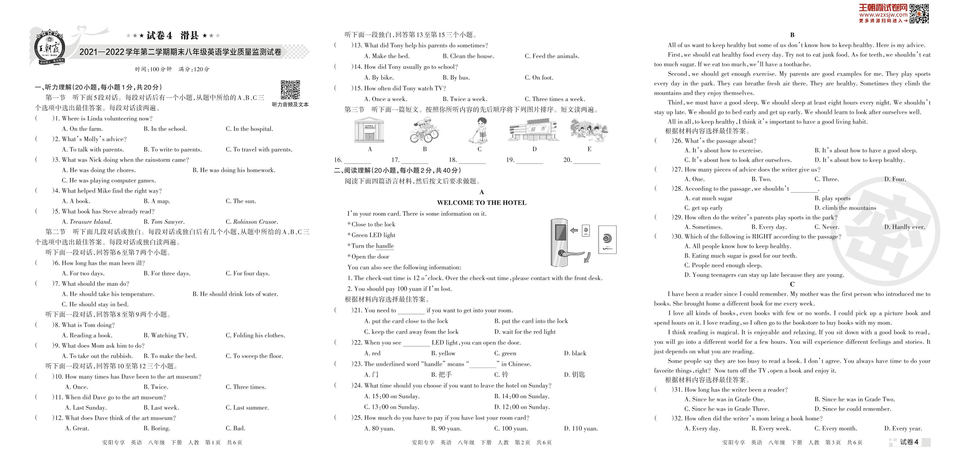 滑县2021—2022学年第二学期期末八年级英语学业质量监测试卷(人教版)【4】