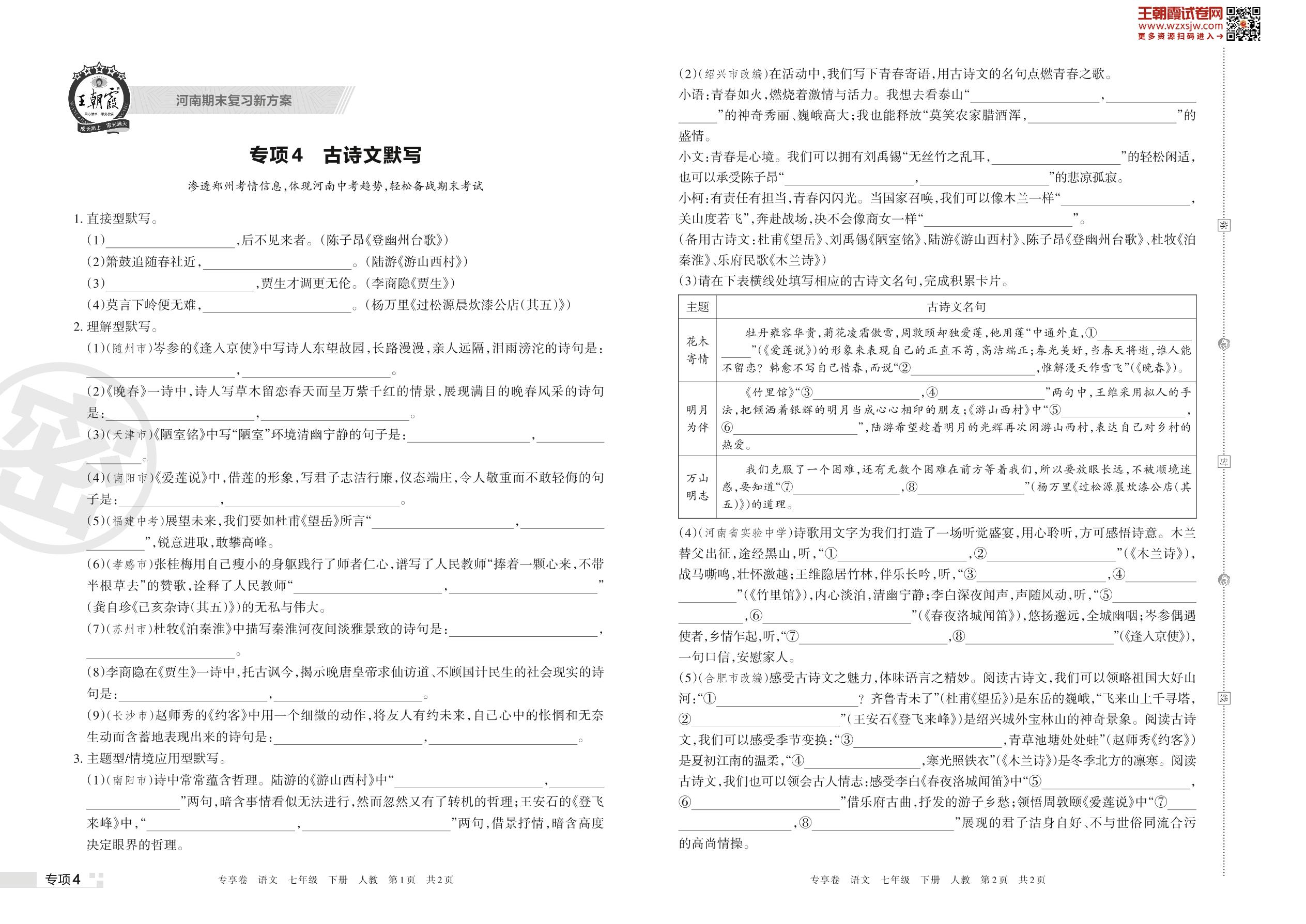 王朝霞期末专项卷——古诗文默写七年级下册语文(人教版)_R230427140727009【4】