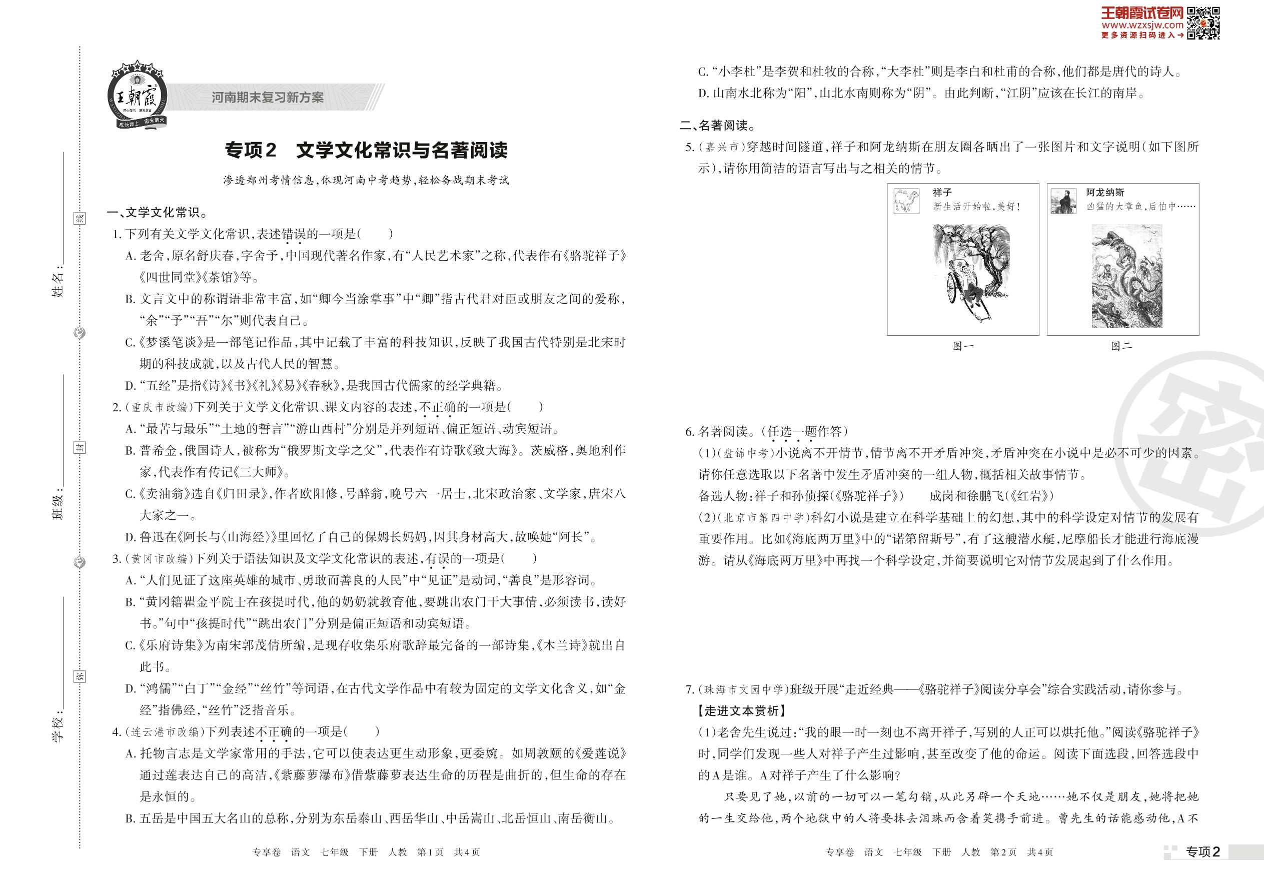 王朝霞期末专项卷——文学文化常识与名著阅读七年级下册语文(人教版)_R230427140727361【2】