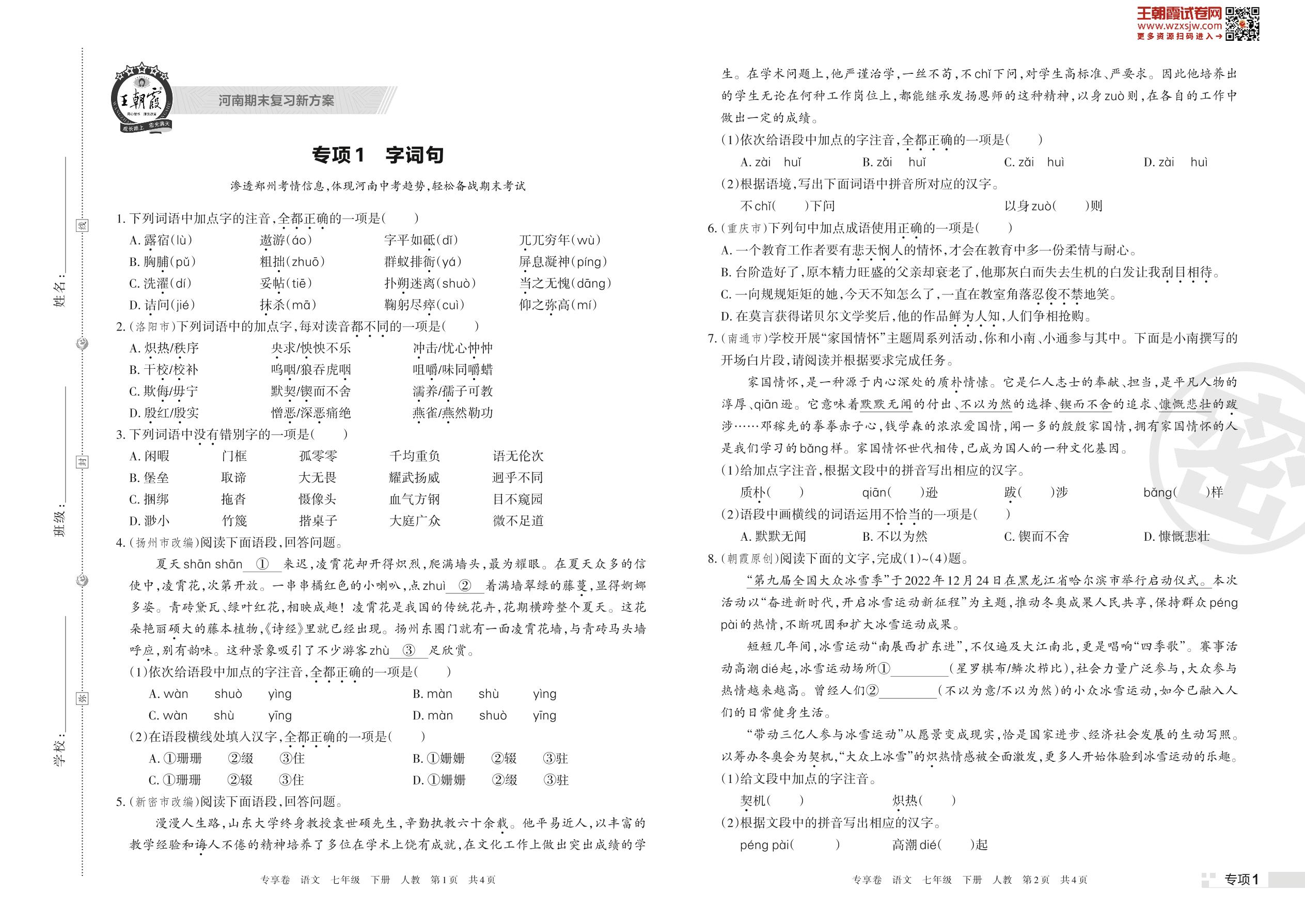 王朝霞期末专项卷——字词句七年级下册语文(人教版)_R230427140727796【1】