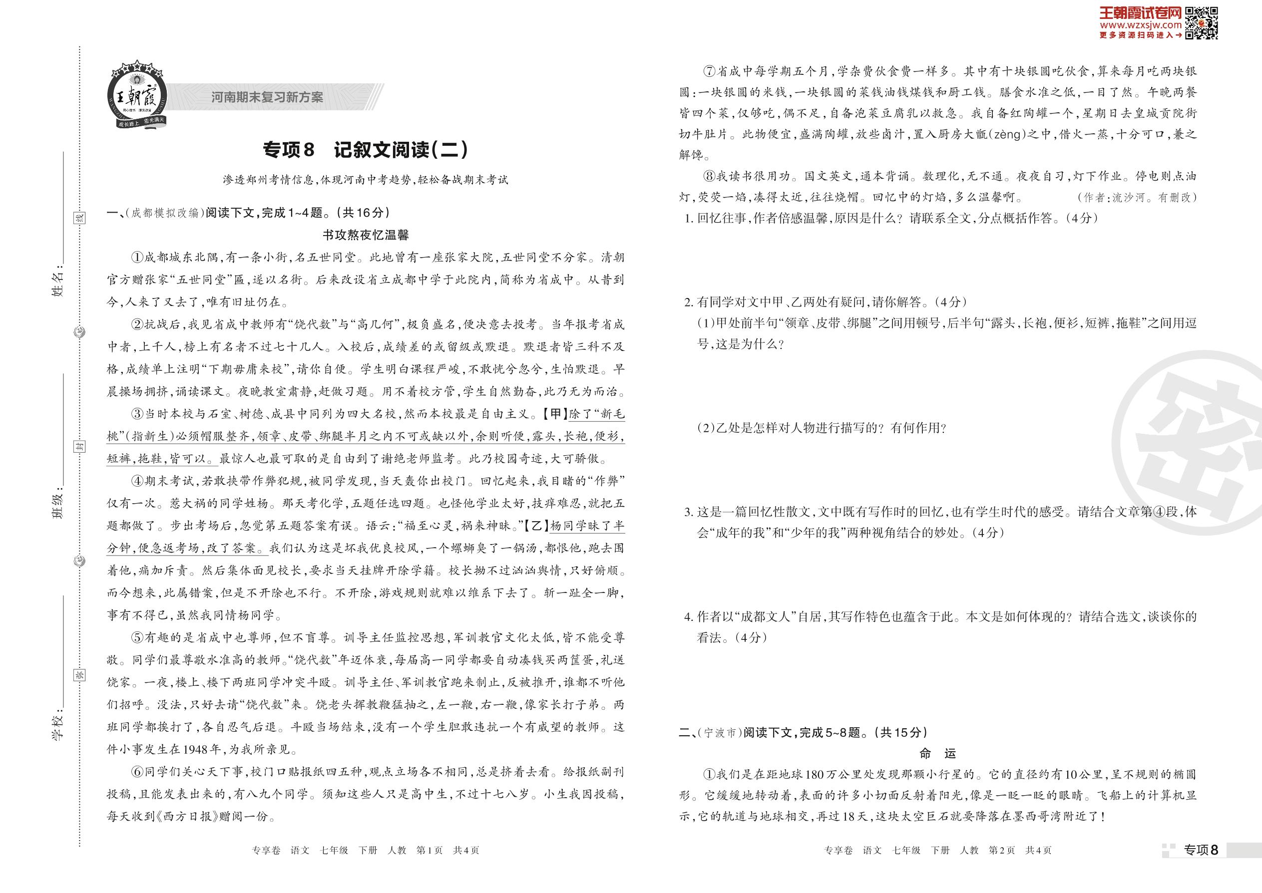 王朝霞期末专项卷——记叙文阅读(二)七年级下册语文(人教版)_R230427140728179【8】