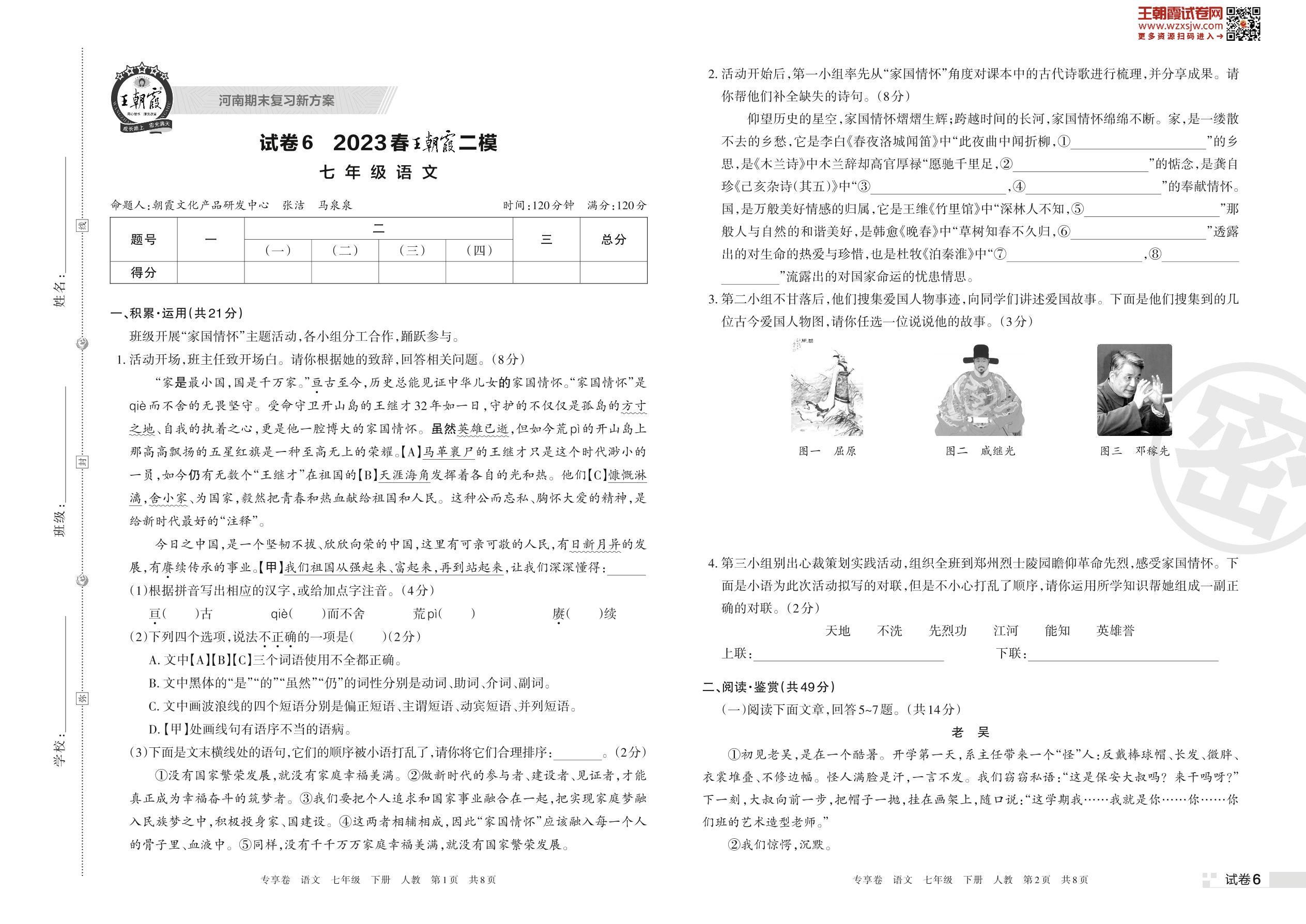 王朝霞期末模拟卷七年级下册语文(人教版)_R230427140729695【6】