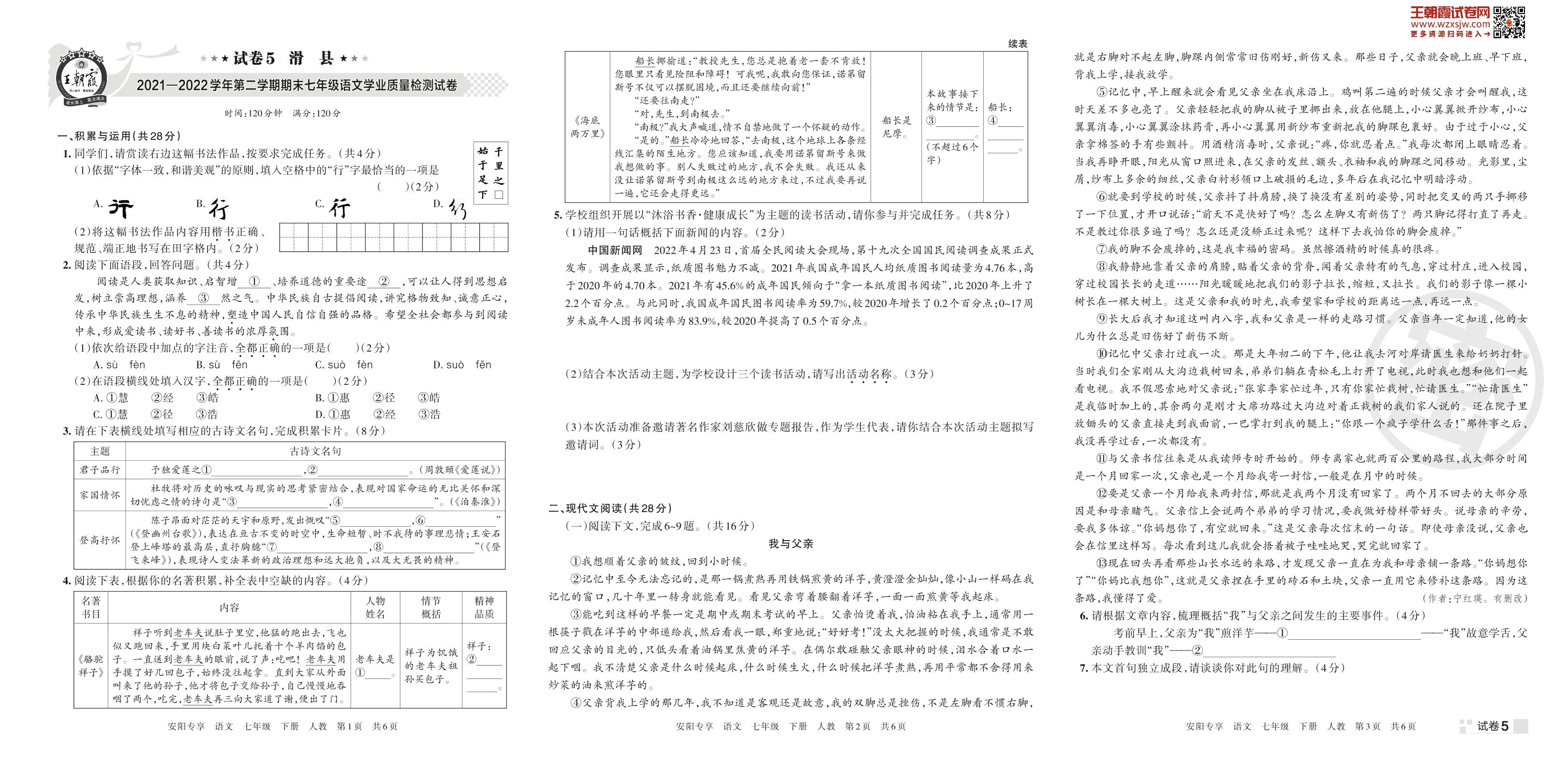 滑县2021—2022学年第二学期期末七年级语文学业质量检测试卷(人教版)【5】