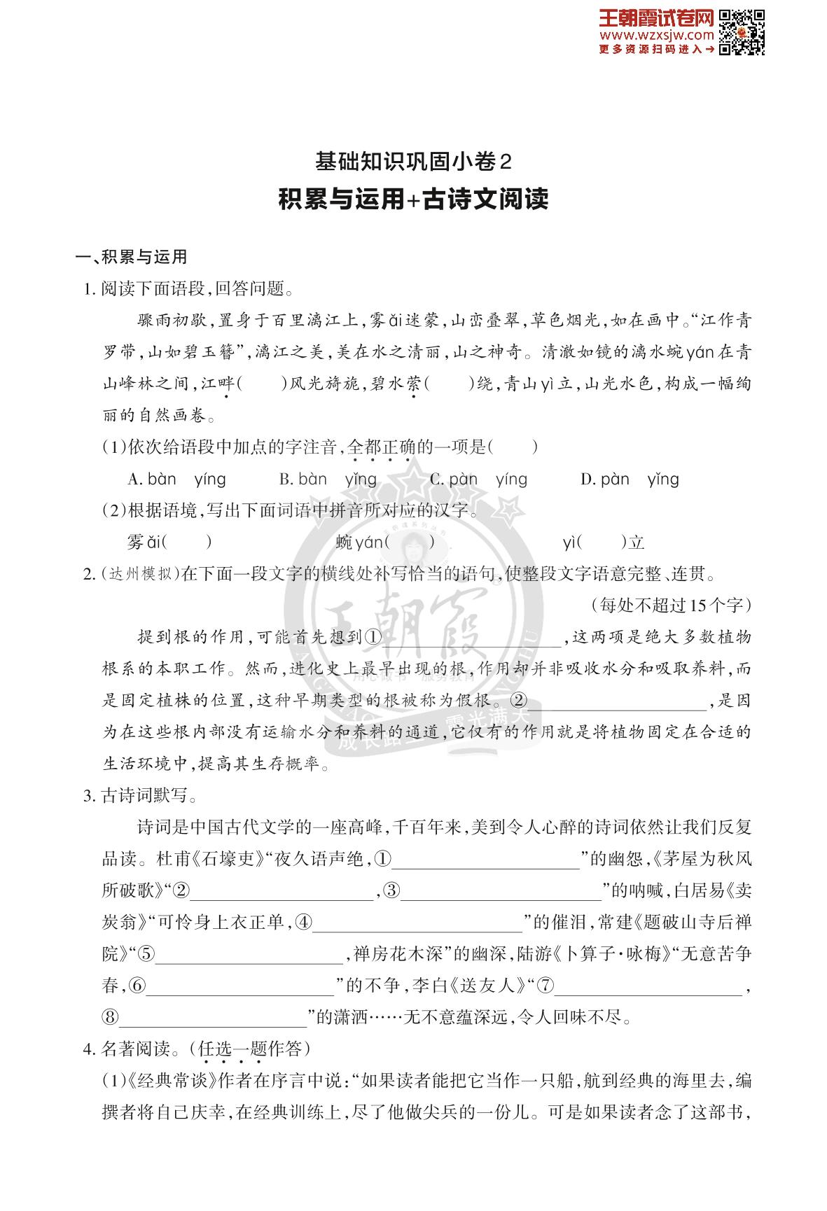 王朝霞期末过课本——基础知识巩固小卷2八年级下册语文(人教版)_R230427142702321