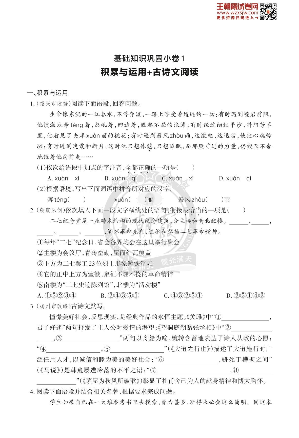 王朝霞期末过课本——基础知识巩固小卷1八年级下册语文(人教版)_R230427142702624
