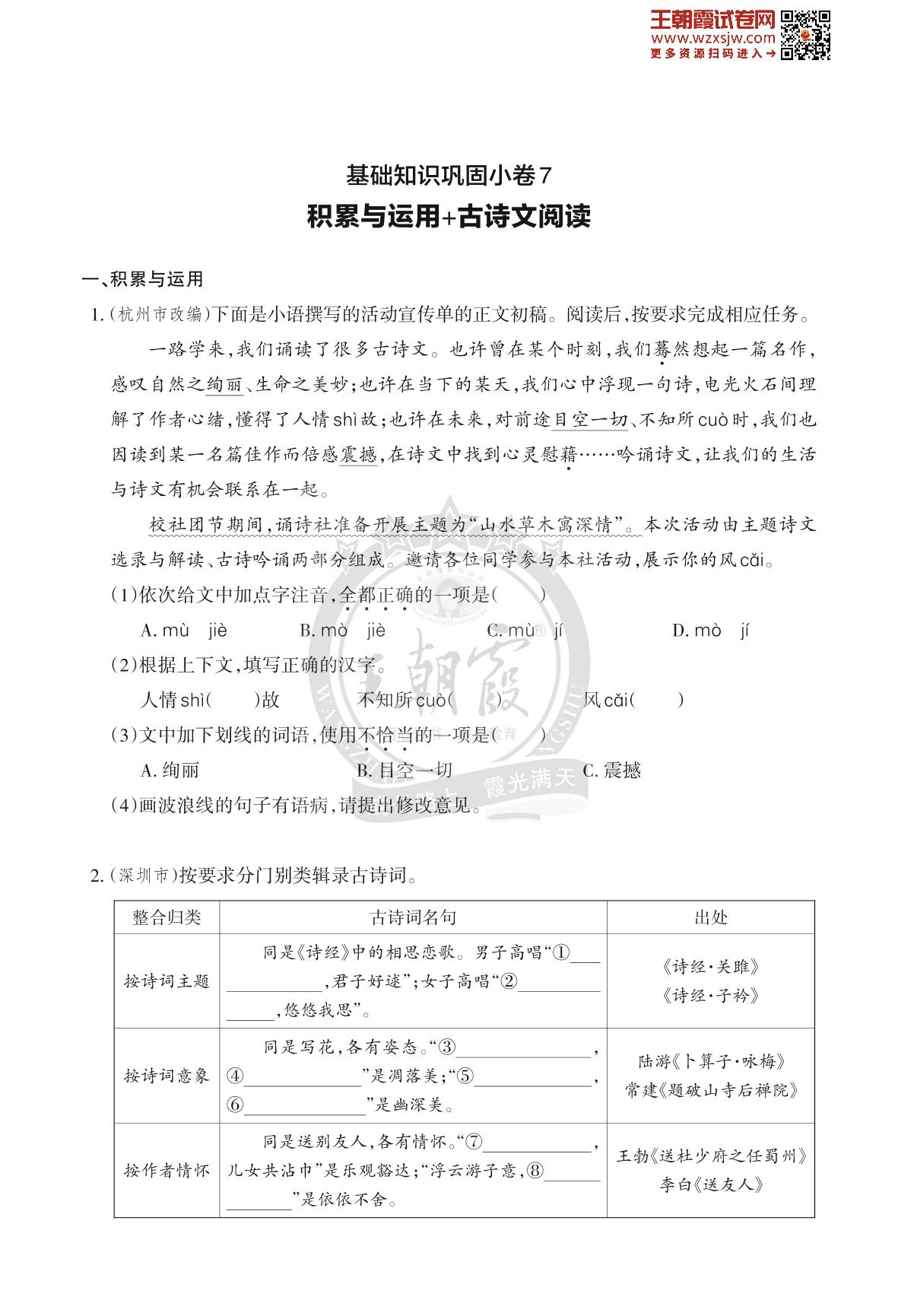 王朝霞期末过课本——基础知识巩固小卷7八年级下册语文(人教版)_R230427142702327