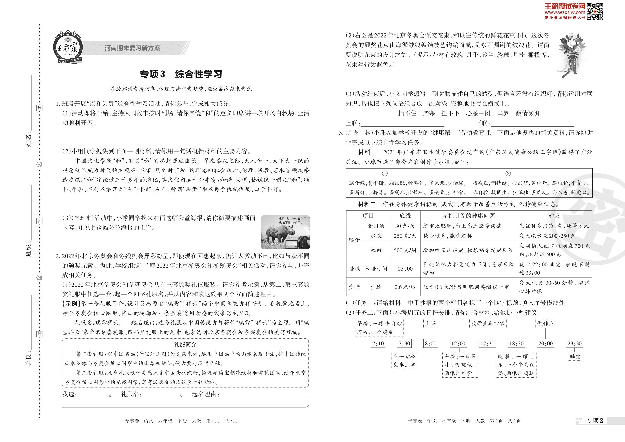 王朝霞期末专项卷——综合性学习八年级下册语文(人教版)_R230427142703302【3】