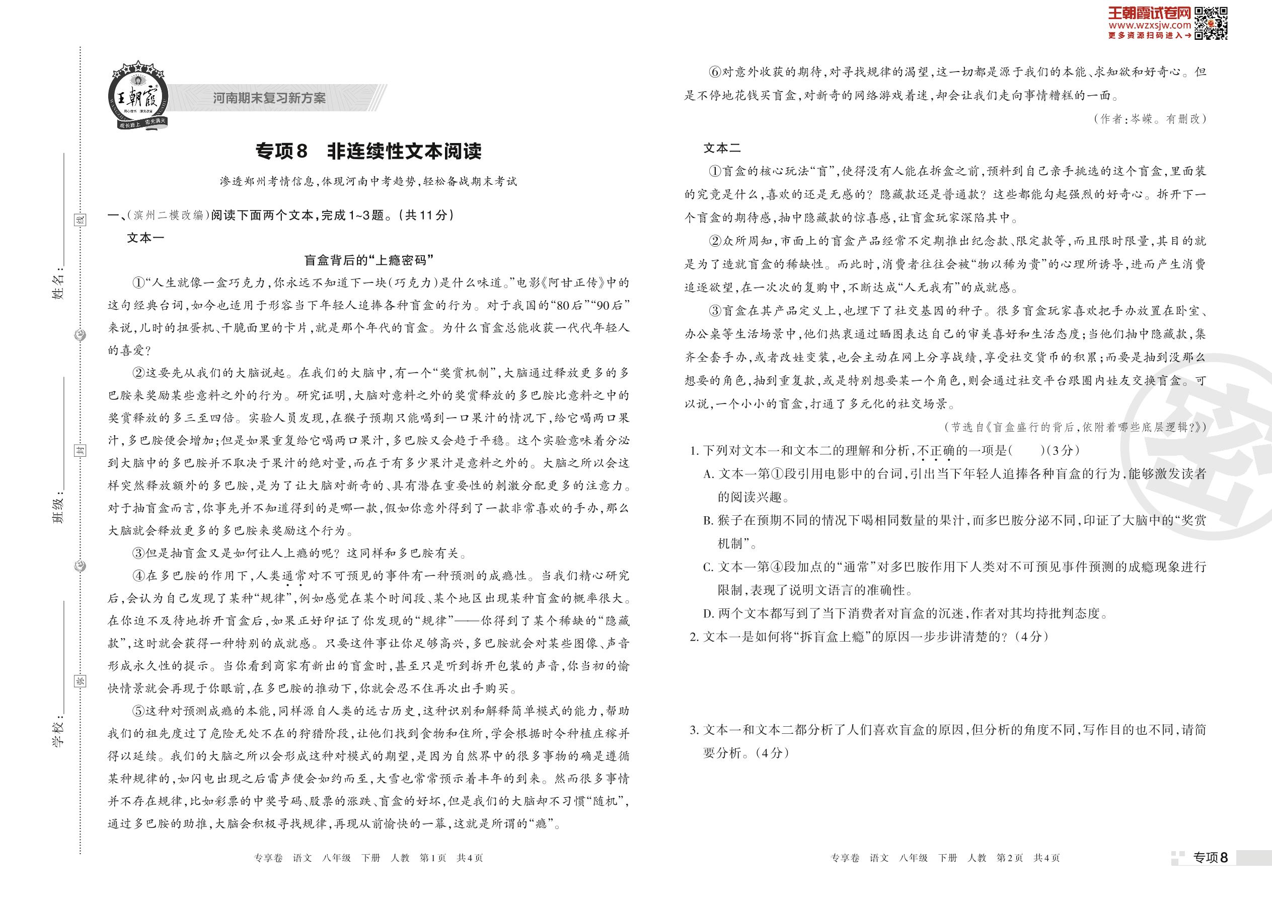 王朝霞期末专项卷——非连续性文本阅读八年级下册语文(人教版)_R230427142703044【8】