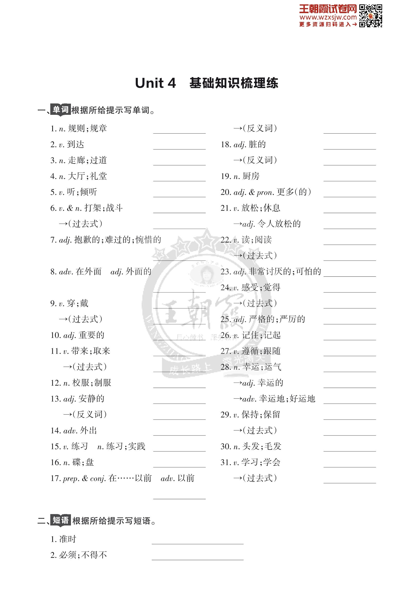 王朝霞期末过课本——Unit 4 基础知识梳理练七年级下册英语(人教版)_R230427145756955