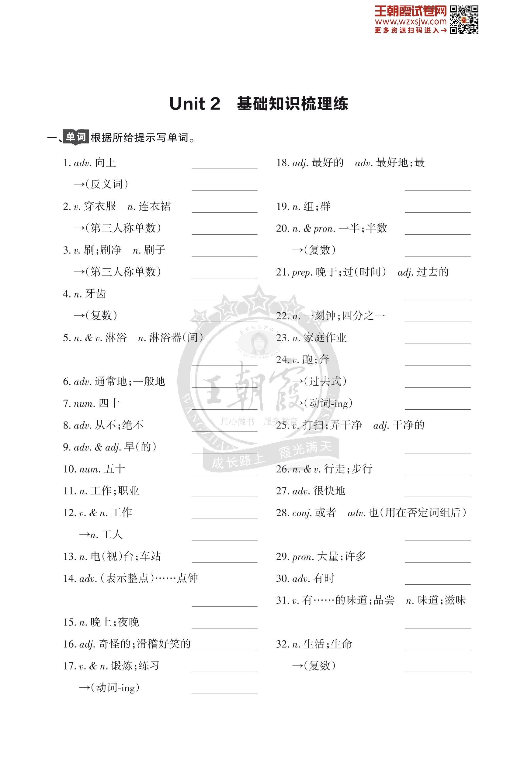 王朝霞期末过课本——Unit 2 基础知识梳理练七年级下册英语(人教版)_R230427145756949