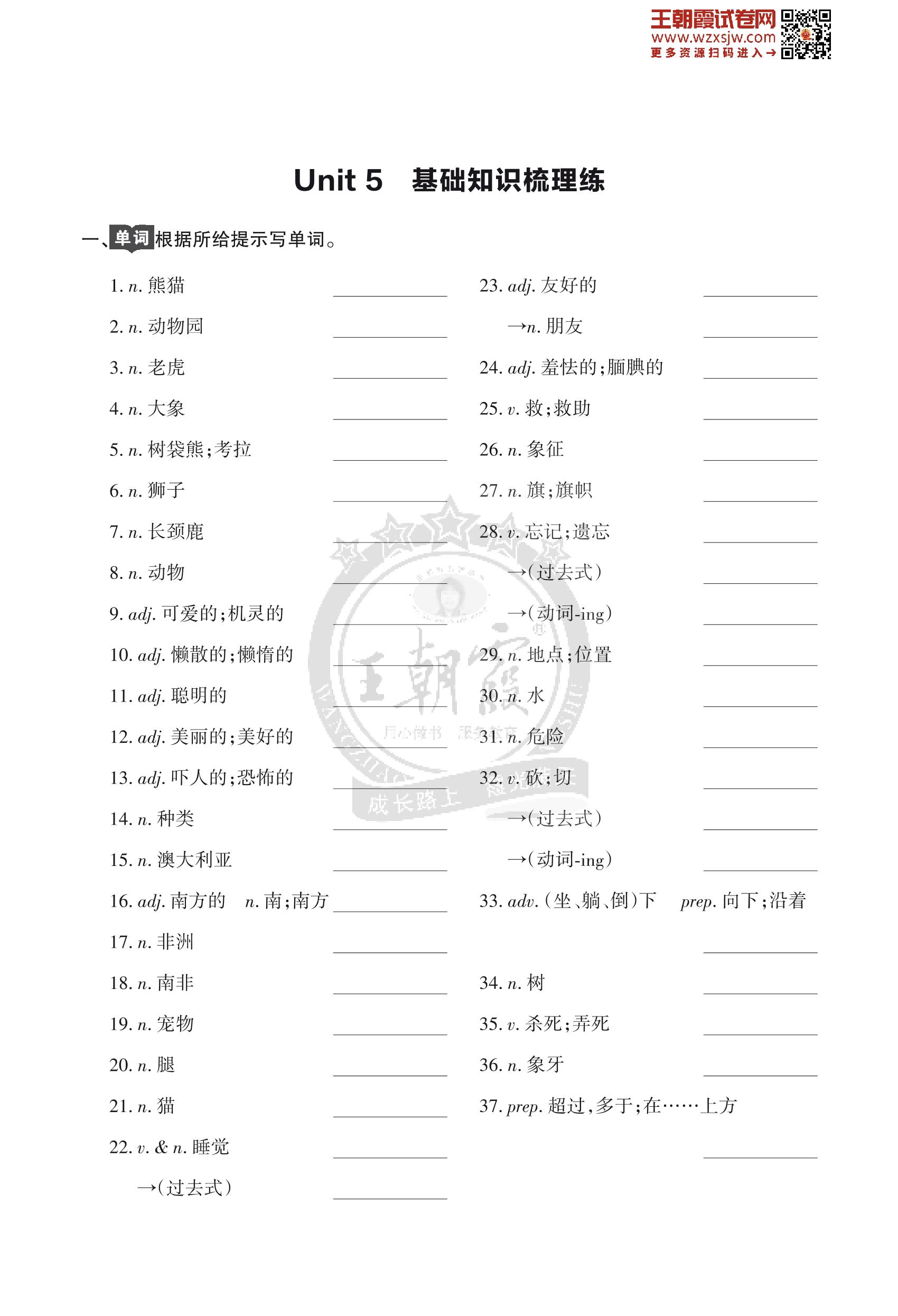 王朝霞期末过课本——Unit 5 基础知识梳理练七年级下册英语(人教版)_R230427145756314
