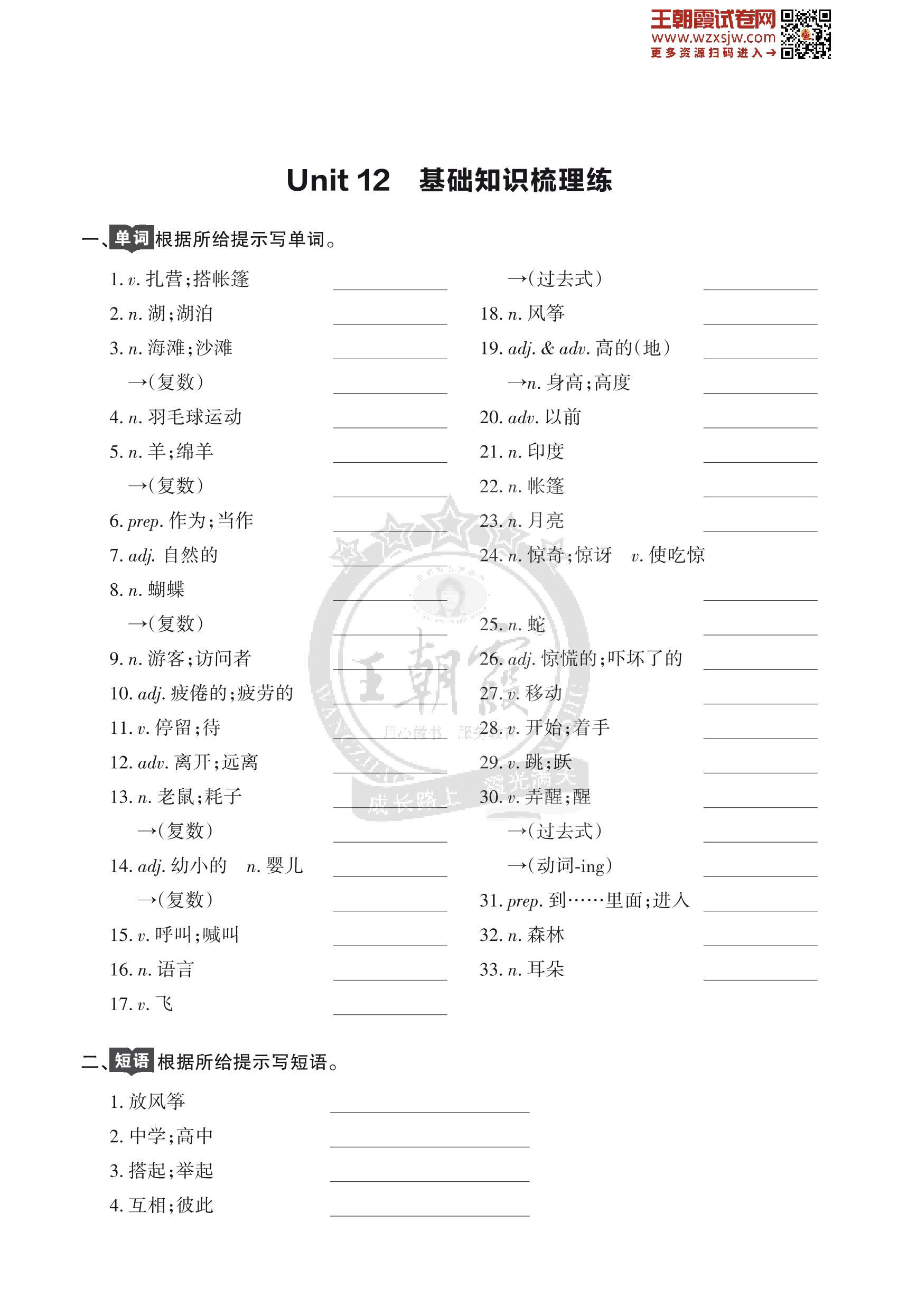 王朝霞期末过课本——Unit 12 基础知识梳理练七年级下册英语(人教版)_R230427145756917