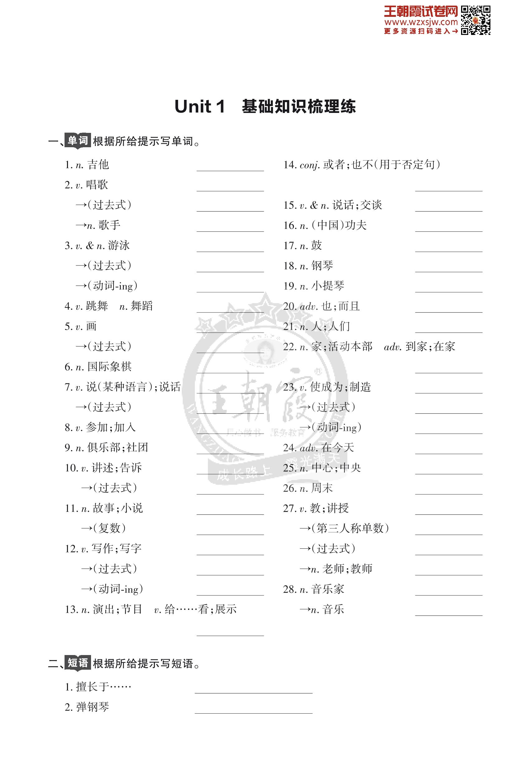王朝霞期末过课本——Unit 1 基础知识梳理练七年级下册英语(人教版)_R230427145757809