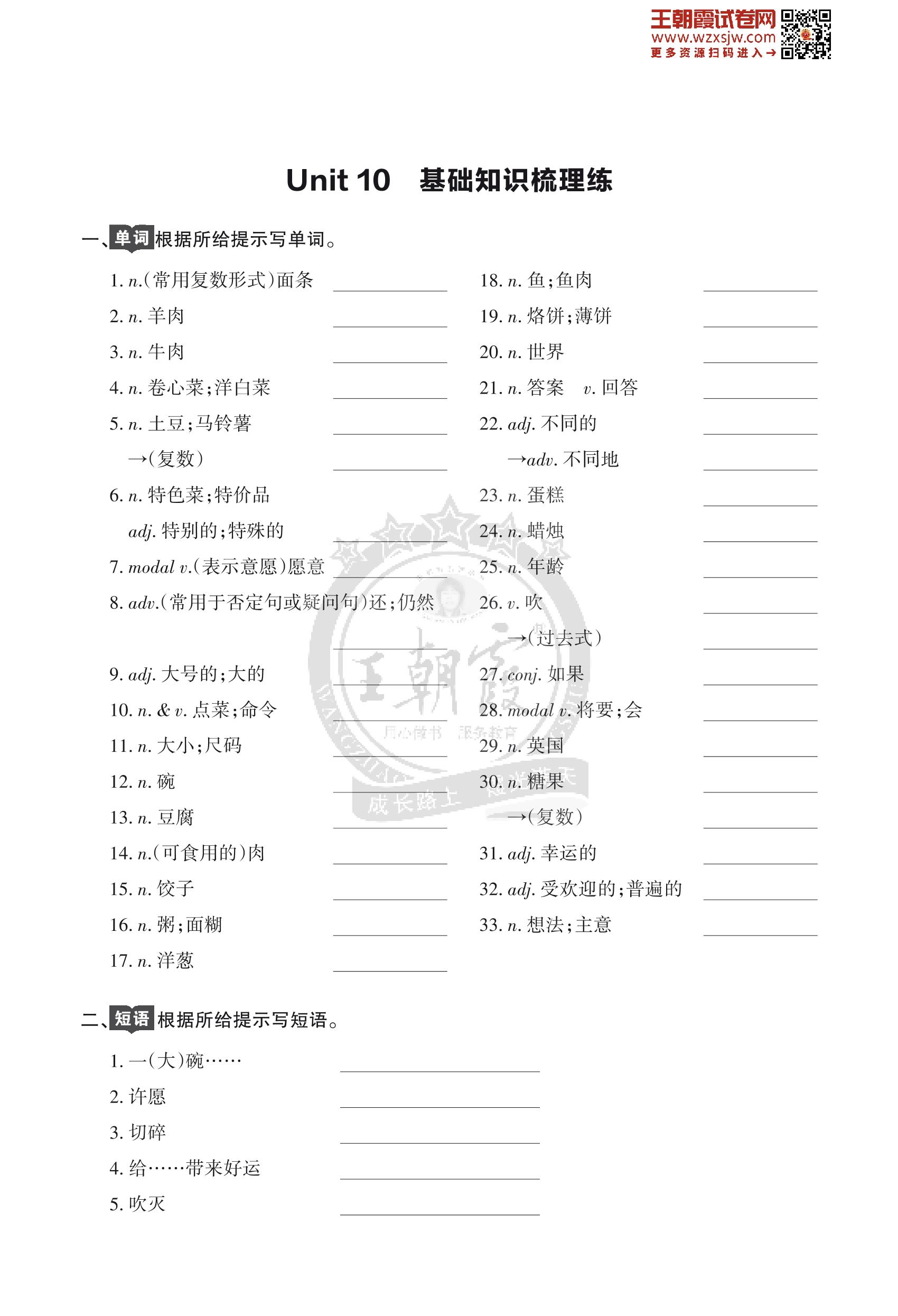 王朝霞期末过课本——Unit 10 基础知识梳理练七年级下册英语(人教版)_R230427145757997
