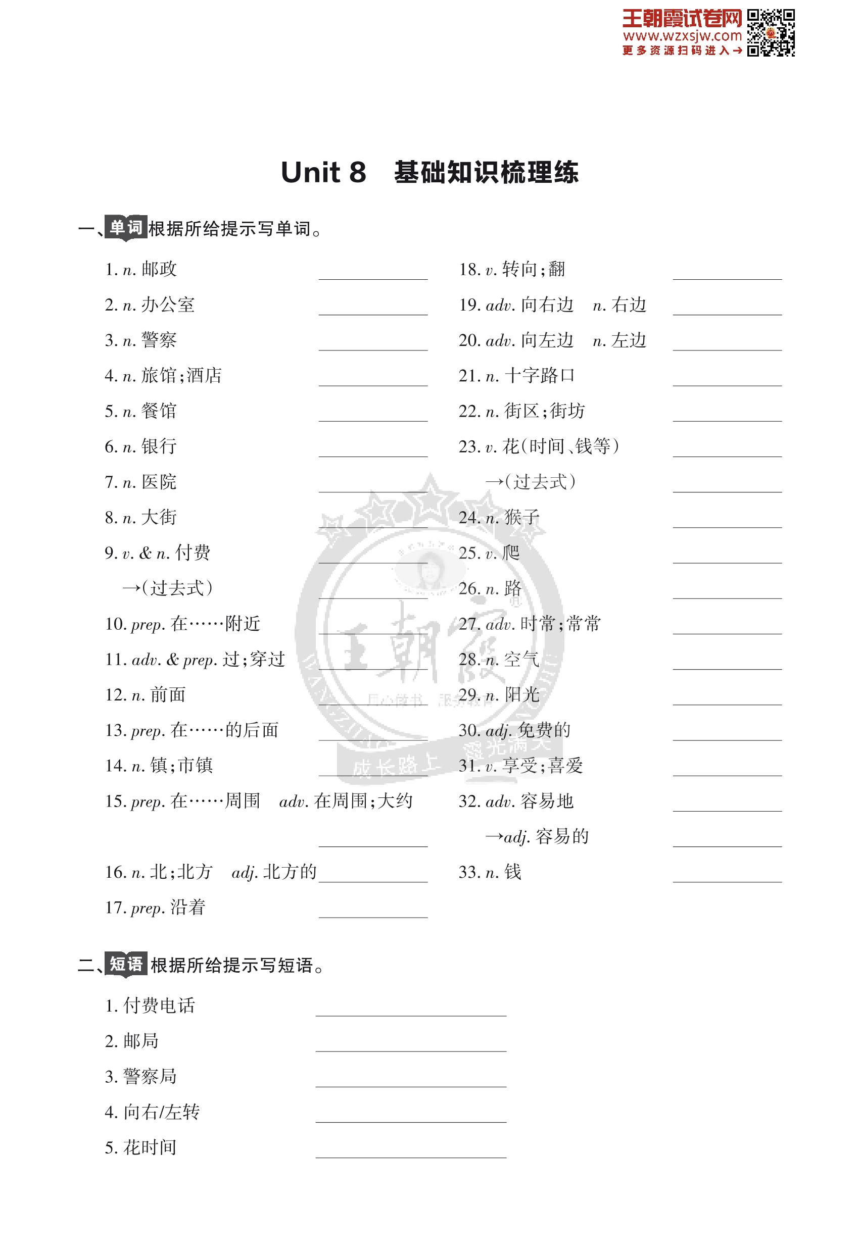王朝霞期末过课本——Unit 8 基础知识梳理练七年级下册英语(人教版)_R230427145757331