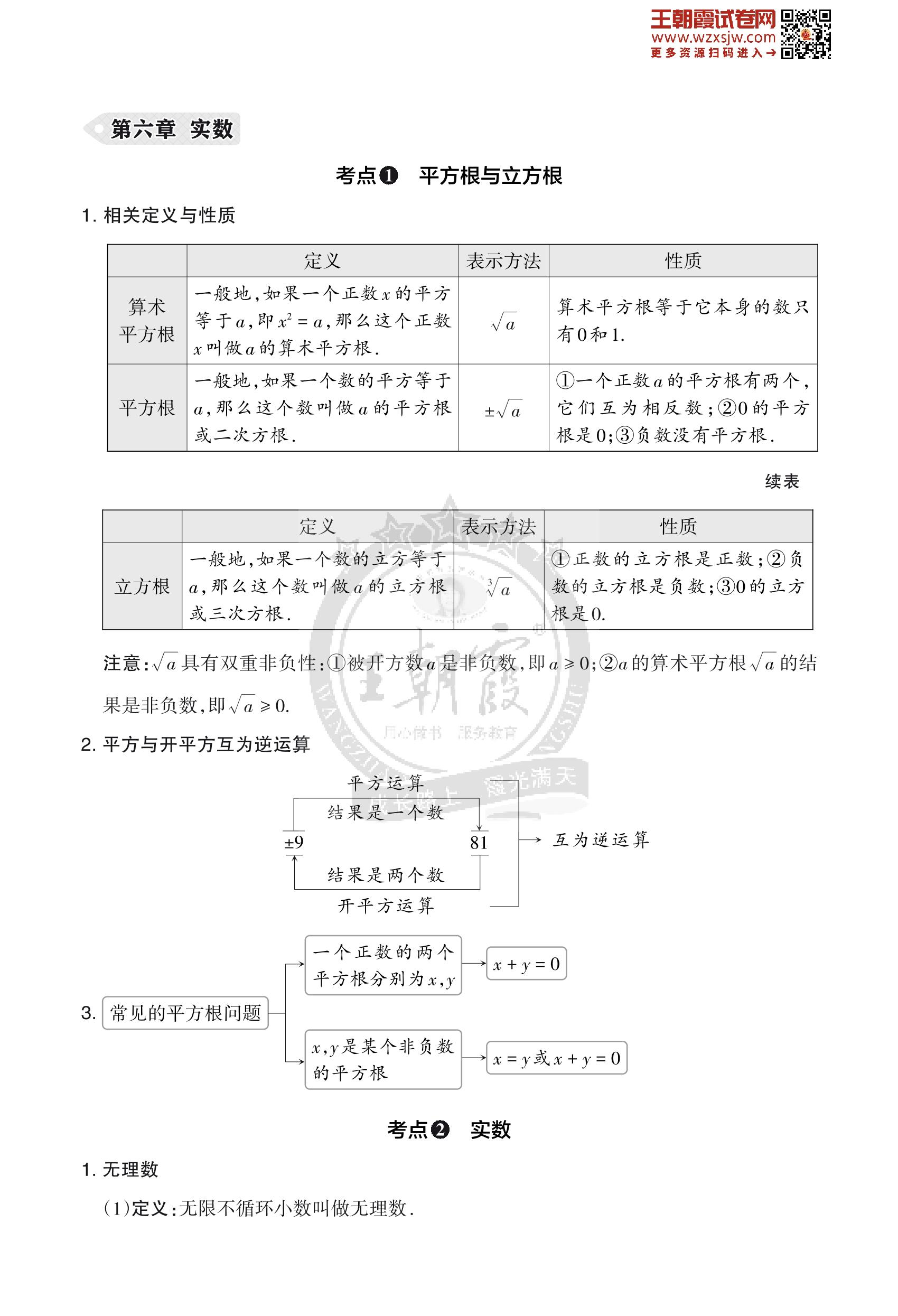王朝霞期末知识梳理——第六章 实数七年级下册数学(人教版)_R230427151850514