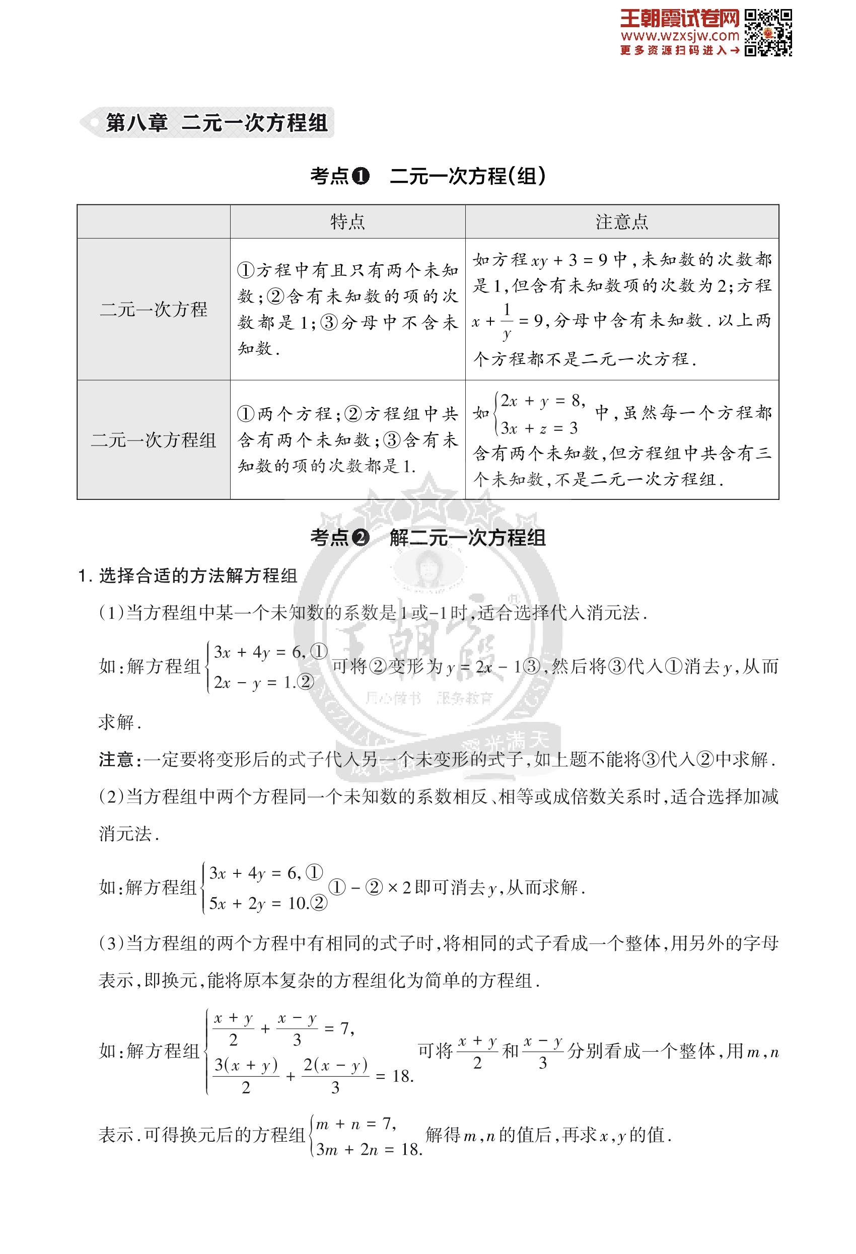 王朝霞期末知识梳理——第八章 二元一次方程组七年级下册数学(人教版)_R230427151850436