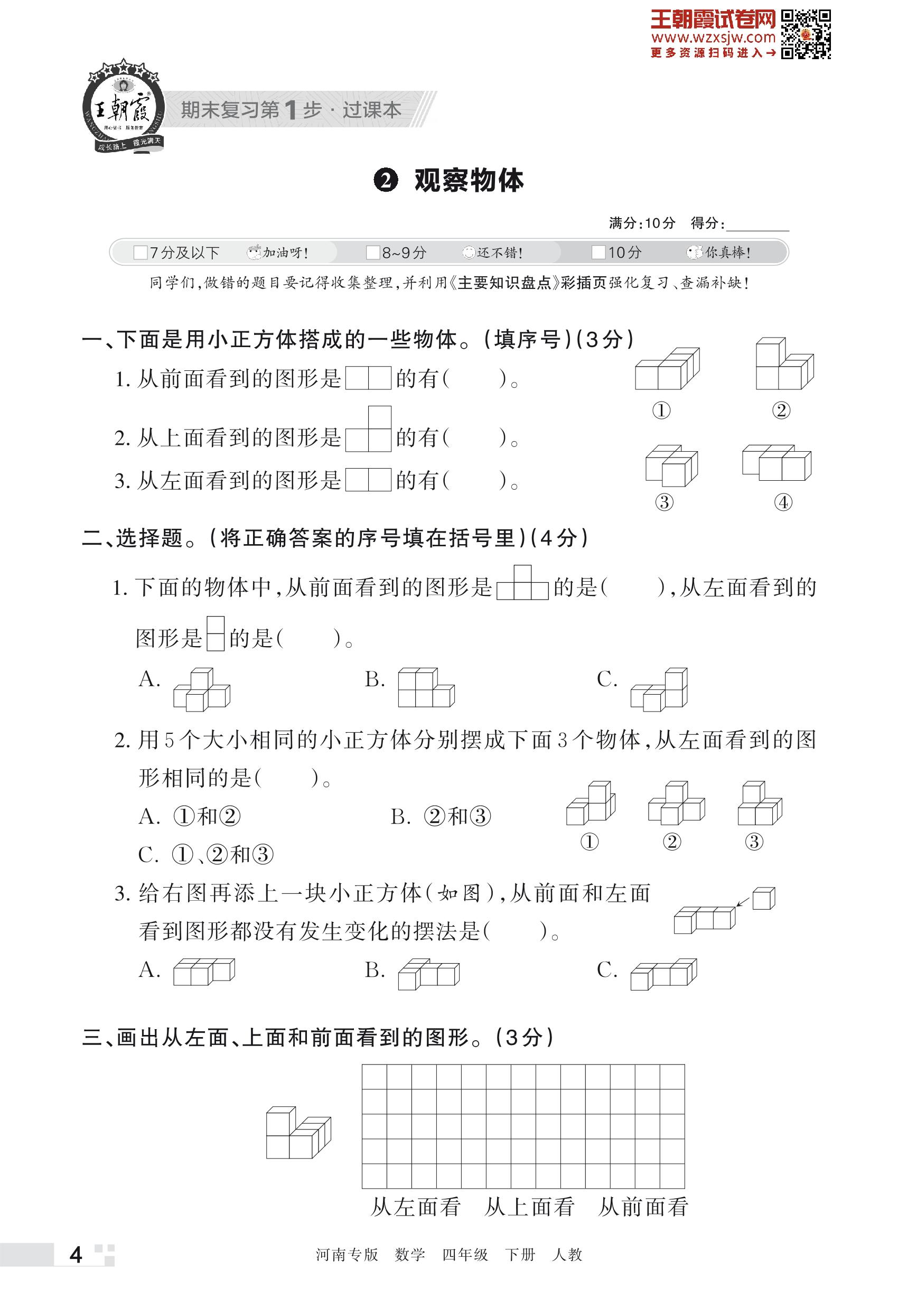 王朝霞期末过课本——2 观察物体四年级下册数学(人教版)_R230428110047882