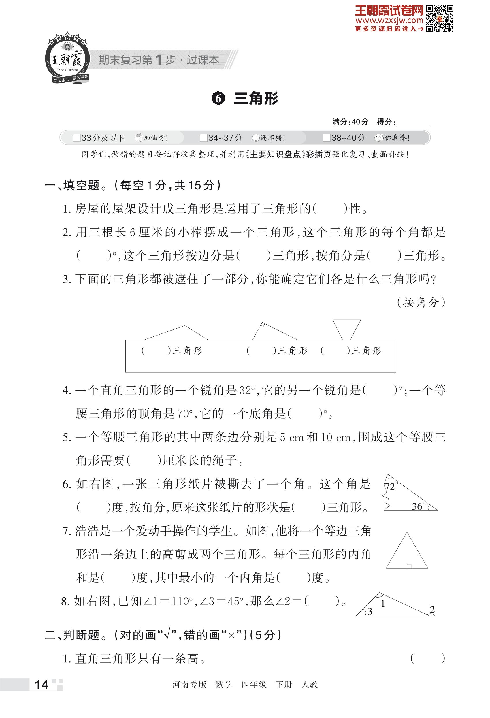 王朝霞期末过课本——6 三角形四年级下册数学(人教版)_R230428110047545