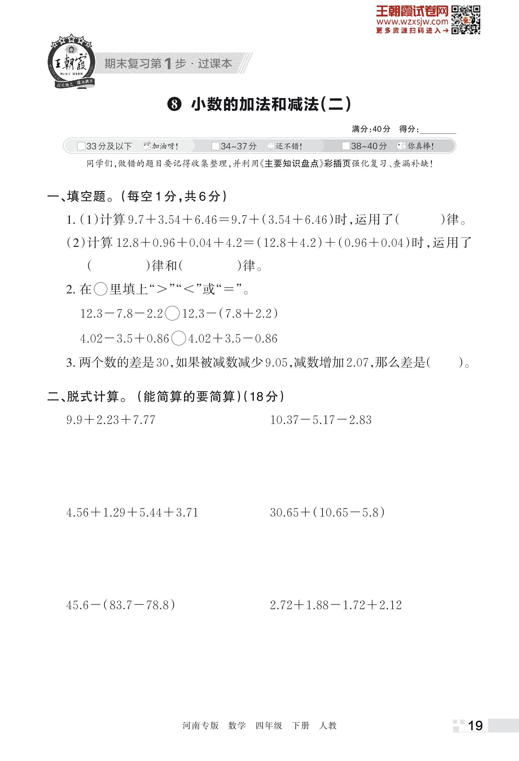 王朝霞期末过课本——8 小数的加法和减法(二)四年级下册数学(人教版)_R230428110047665