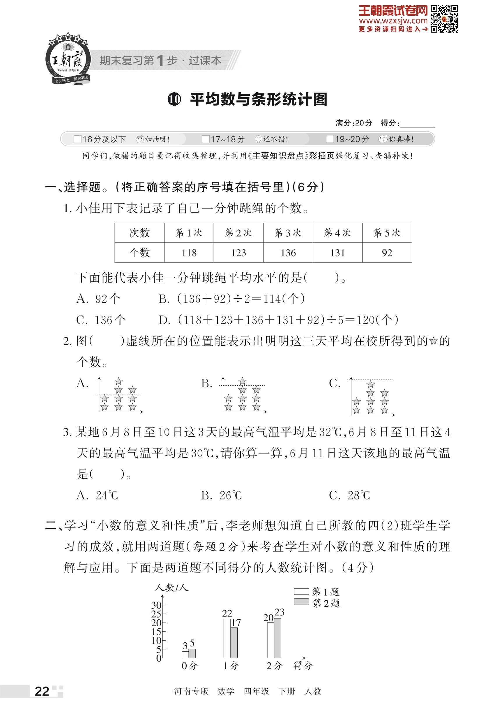 王朝霞期末过课本——10 平均数与条形统计图四年级下册数学(人教版)_R230428110047117