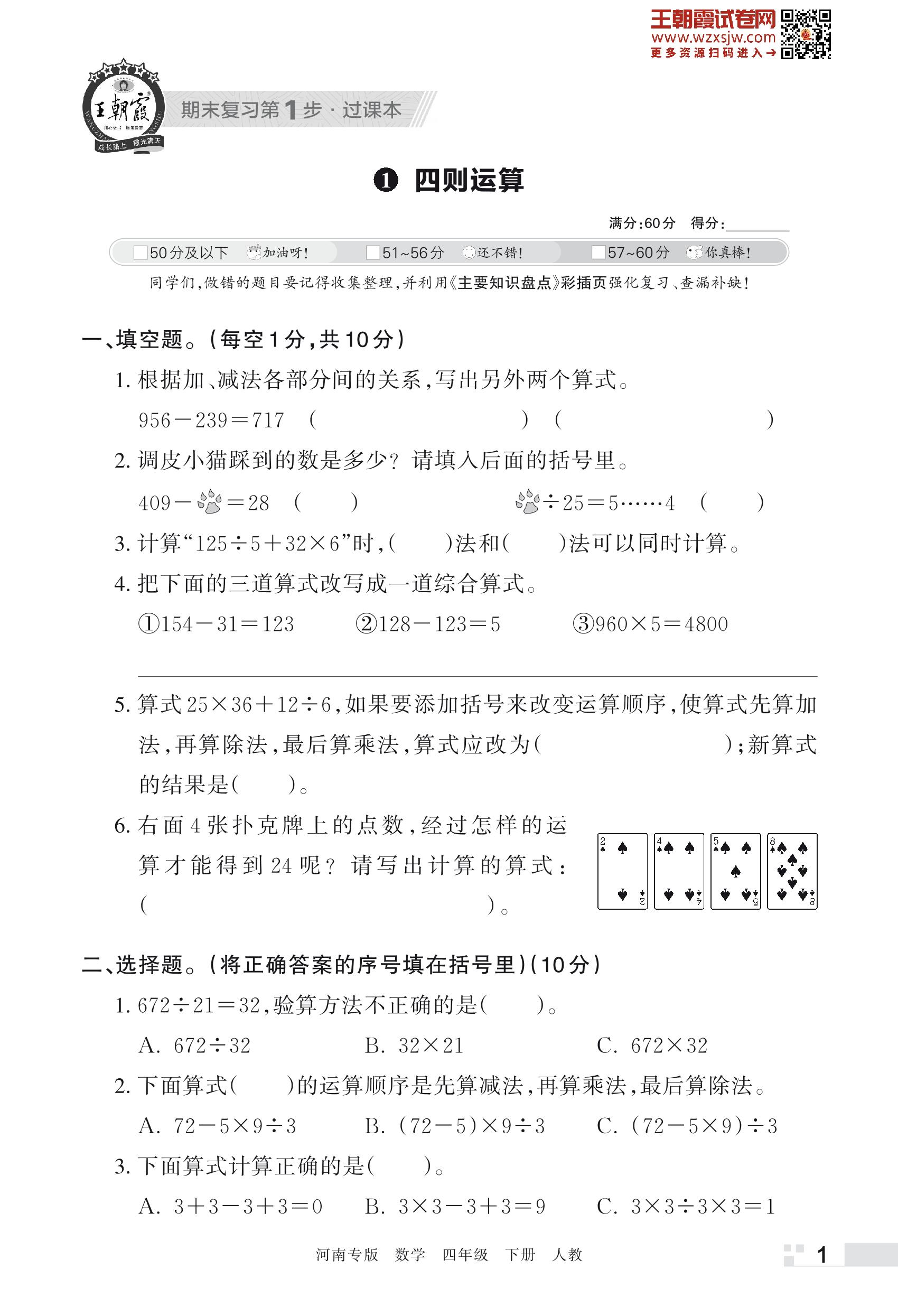 王朝霞期末过课本——1 四则运算四年级下册数学(人教版)_R230428110048549