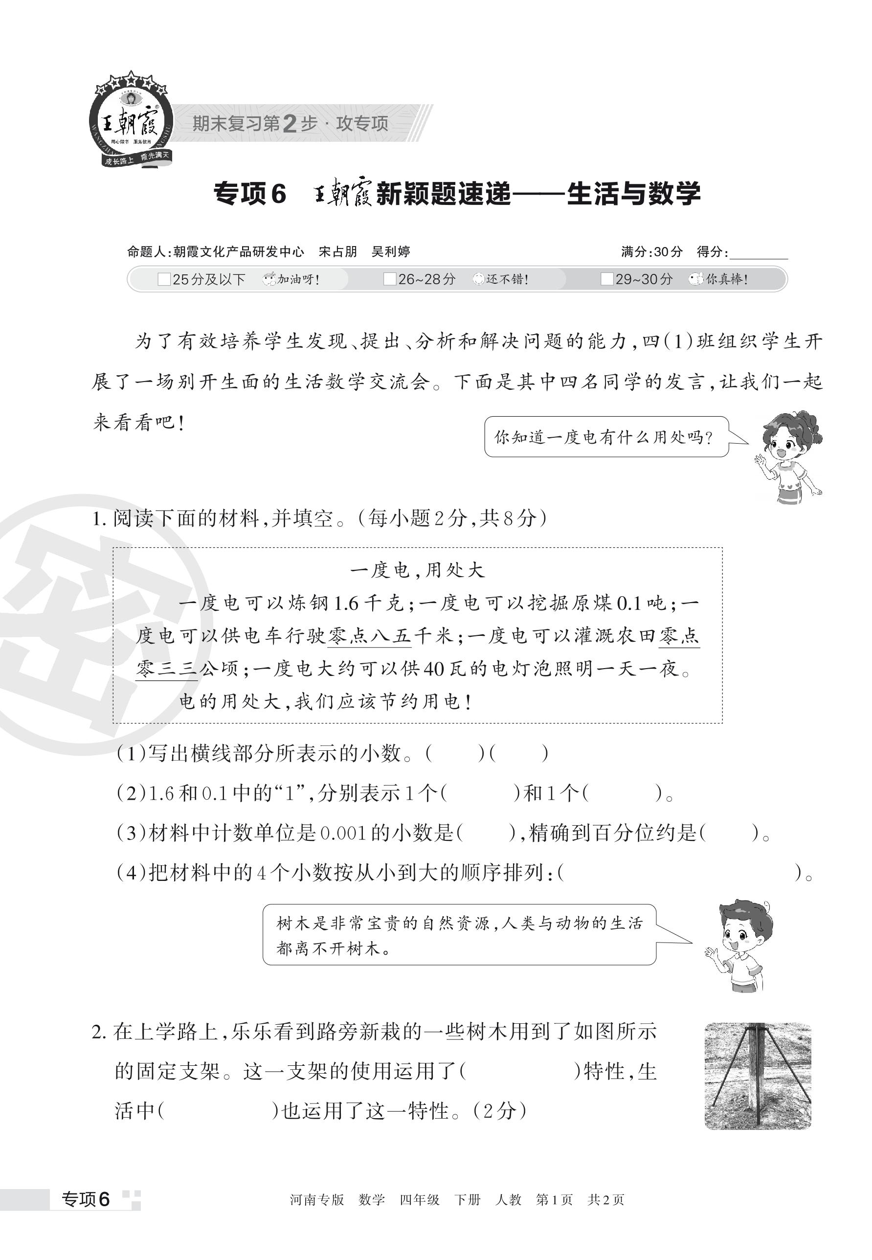 王朝霞期末专项卷——新颖题速递:生活与数学四年级下册数学(人教版)_R230428110048285【6】