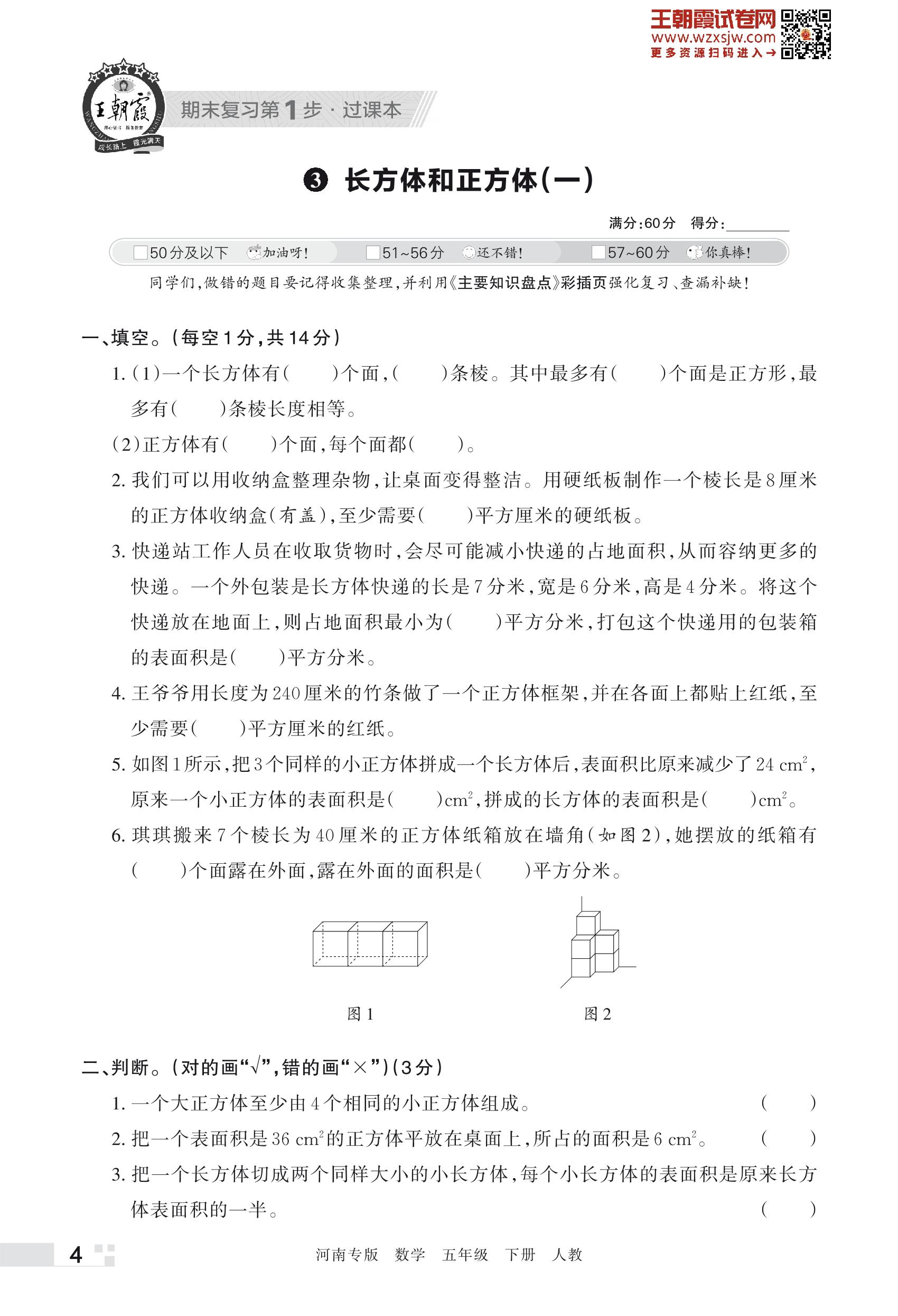 王朝霞期末过课本——3 长方体和正方体(一)五年级下册数学(人教版)_R230428110708146