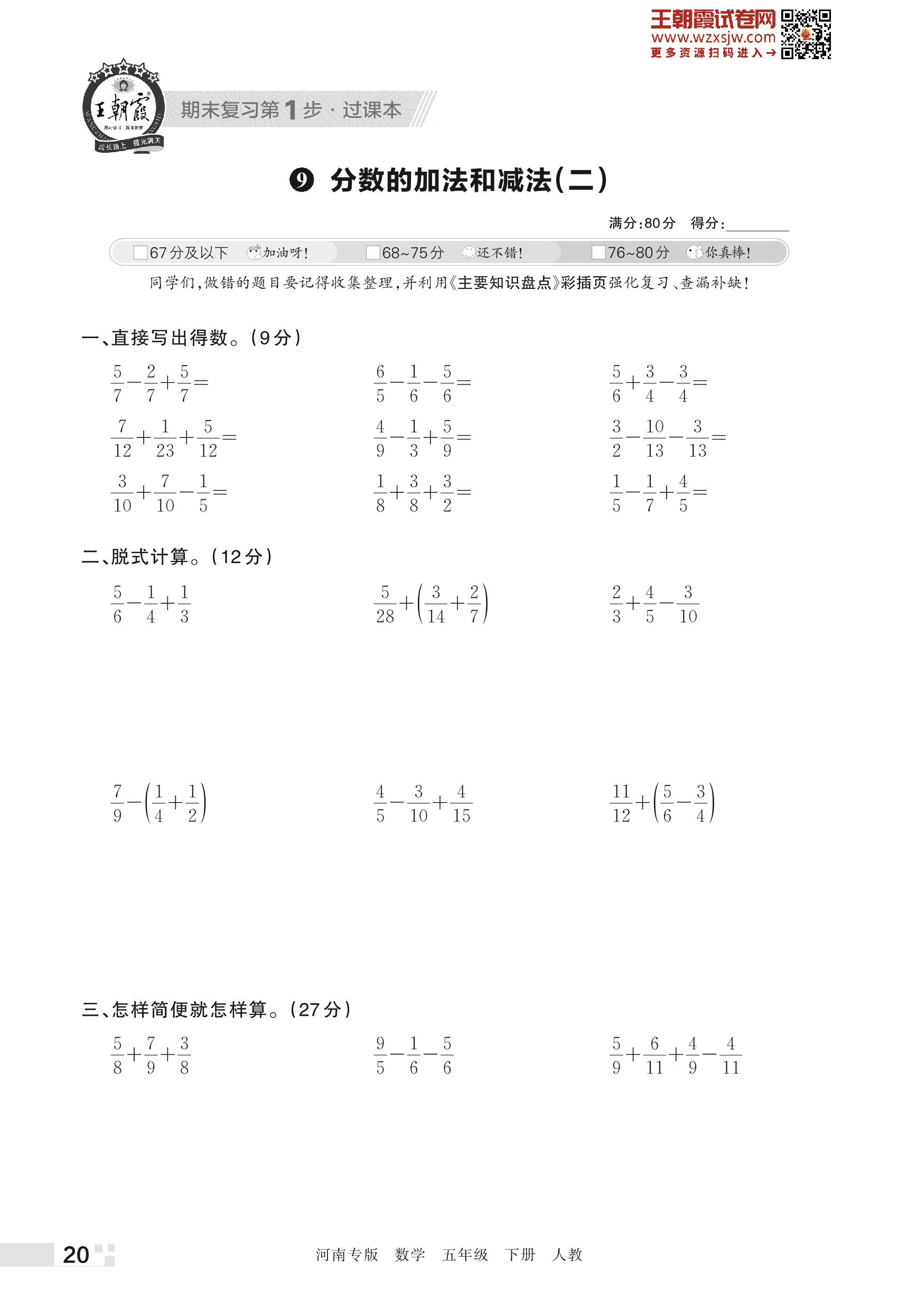王朝霞期末过课本——9 分数的加法和减法(二)五年级下册数学(人教版)_R230428110709382