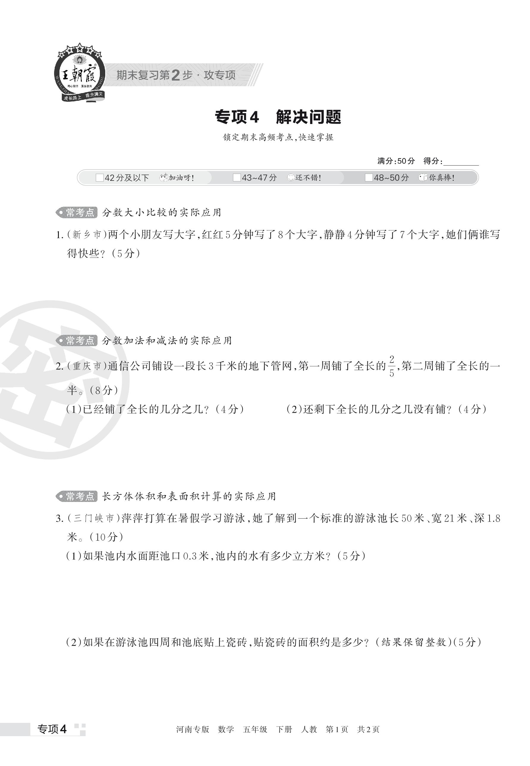 王朝霞期末专项卷——解决问题五年级下册数学(人教版)_R230428110709634【4】
