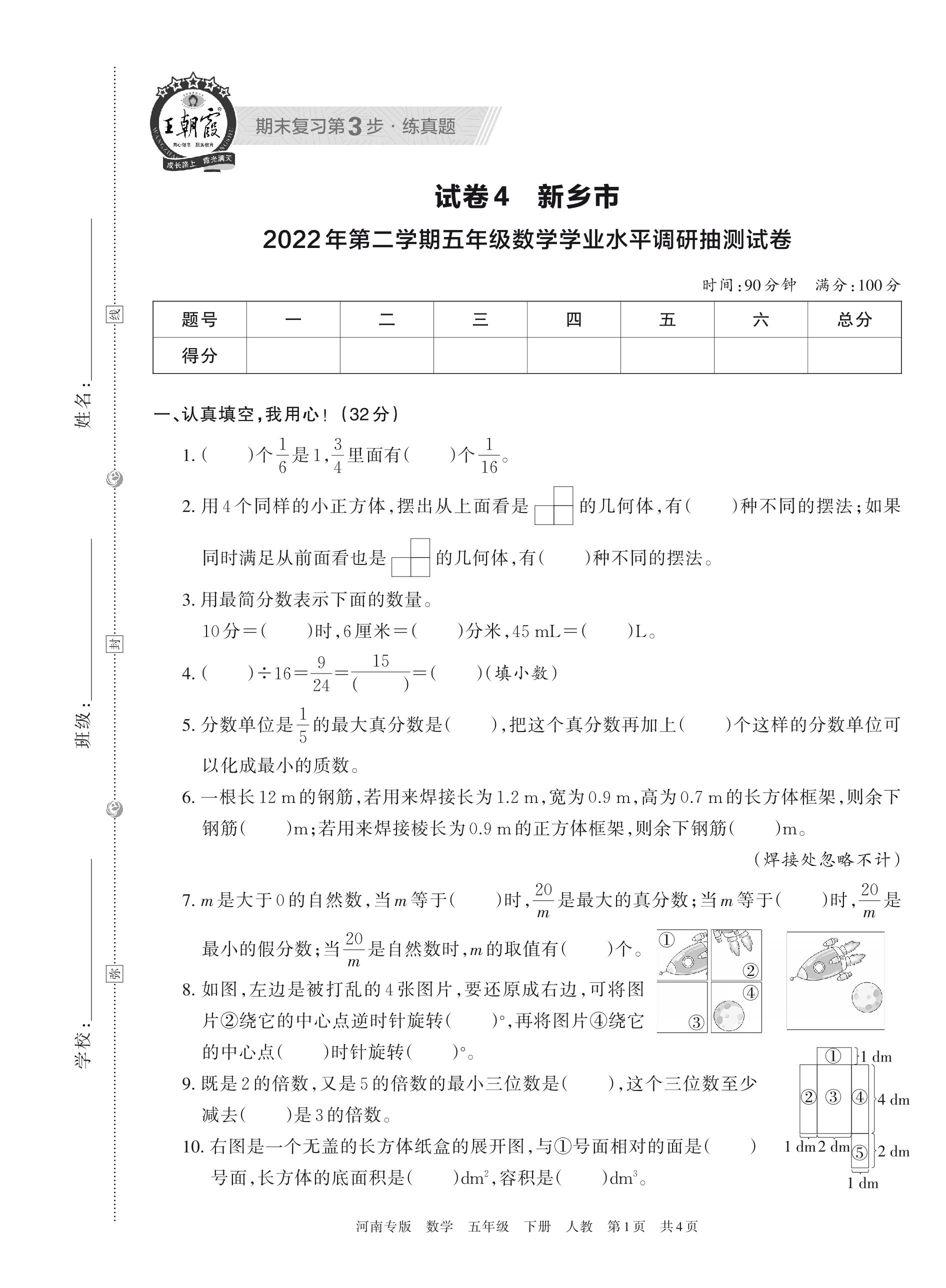 五年级数学人教版下册期末卷