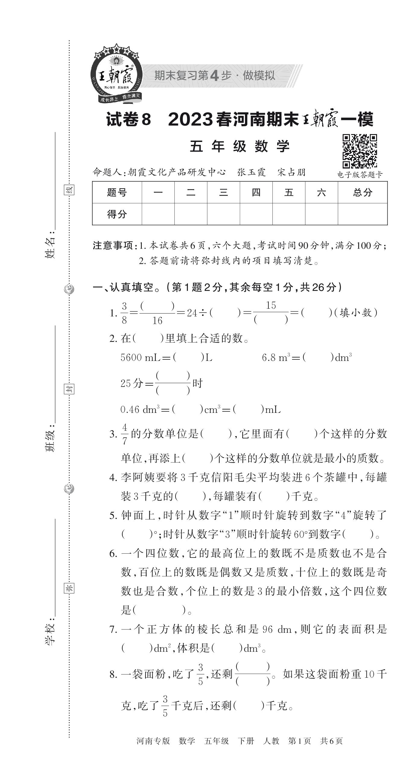 王朝霞期末模拟卷五年级下册数学(人教版)_R230428110711965【8】