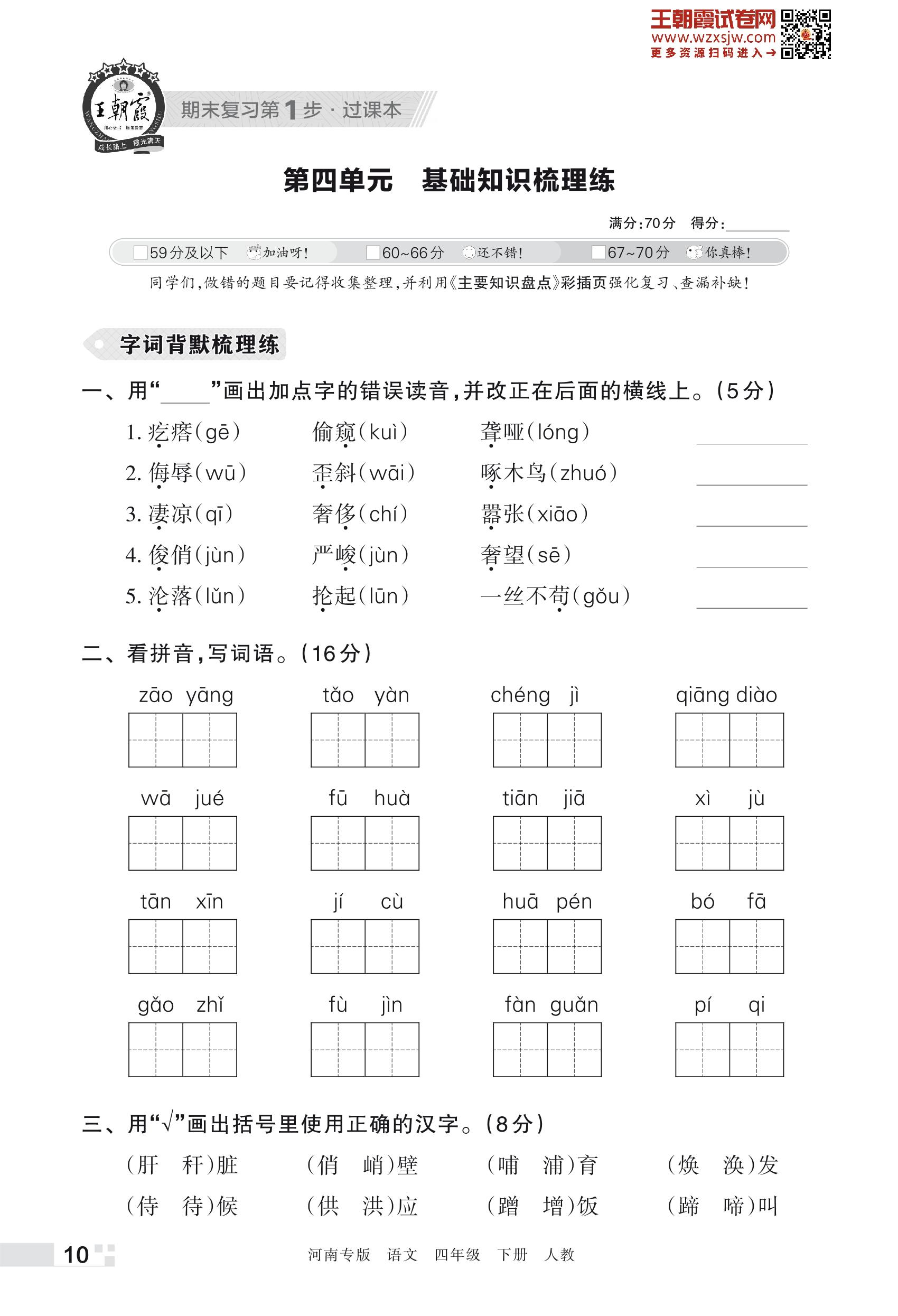 王朝霞期末过课本——第四单元 基础知识梳理练四年级下册语文(人教版)_R230428111226291