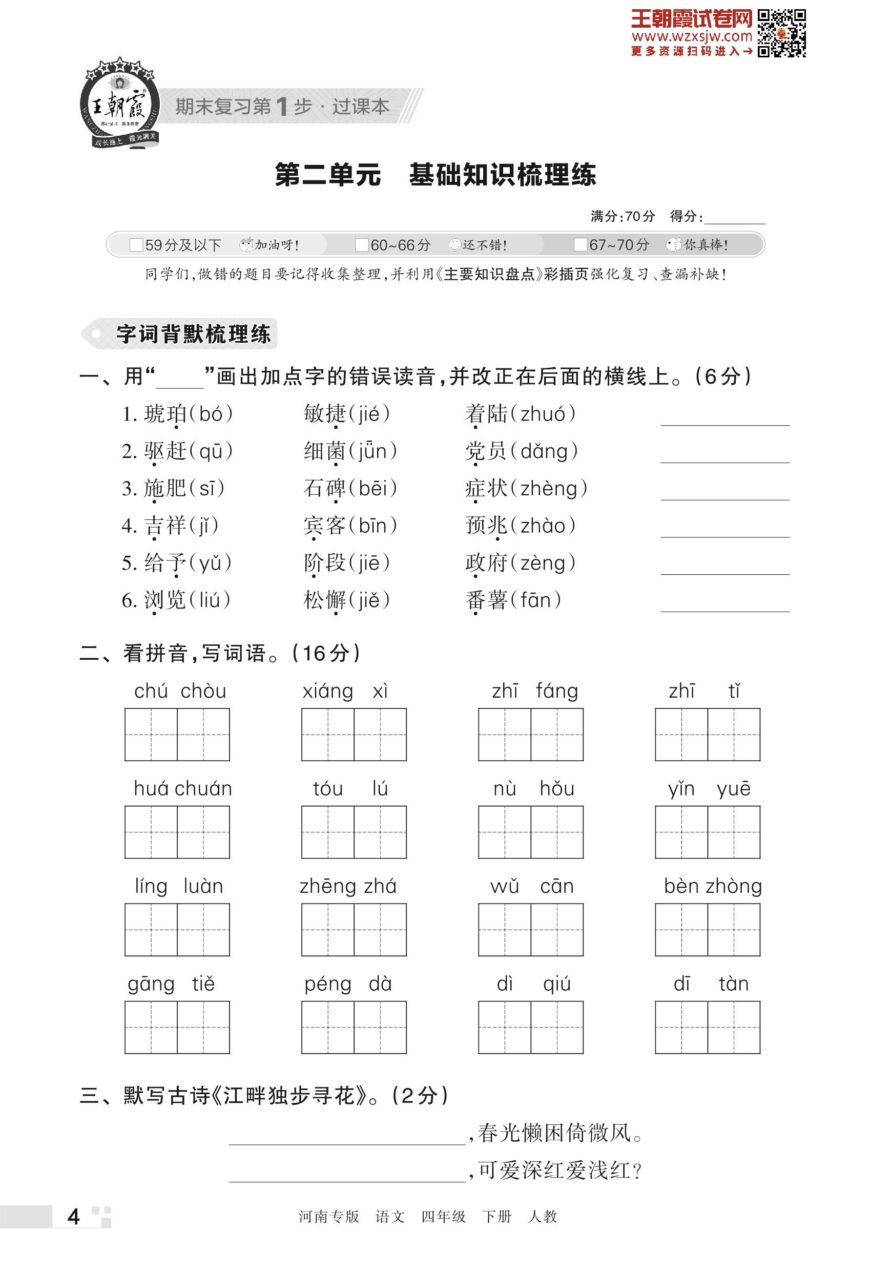 王朝霞期末过课本——第二单元 基础知识梳理练四年级下册语文(人教版)_R230428111227525