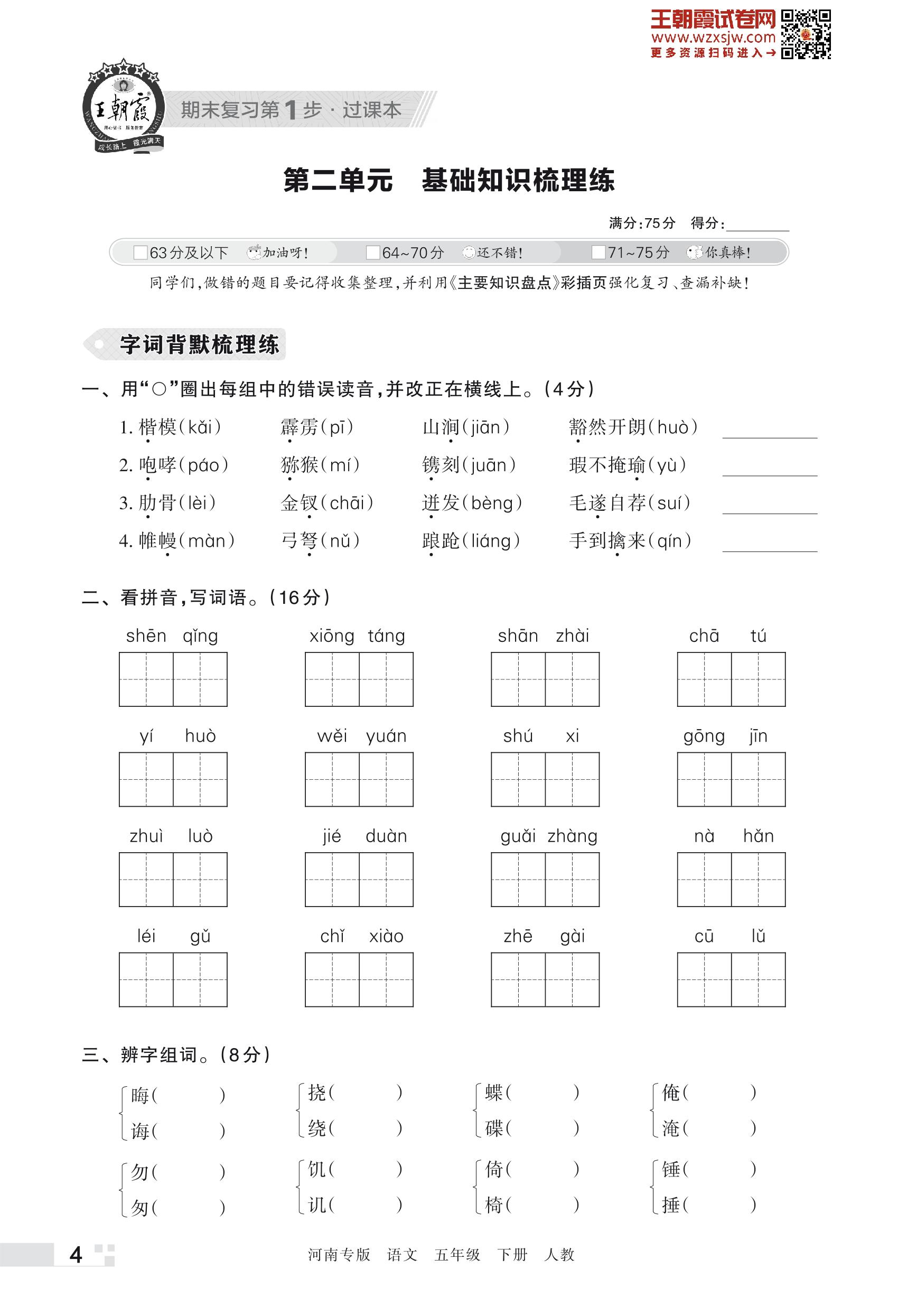 王朝霞期末过课本——第二单元 基础知识梳理练五年级下册语文(人教版)_R230428111724926