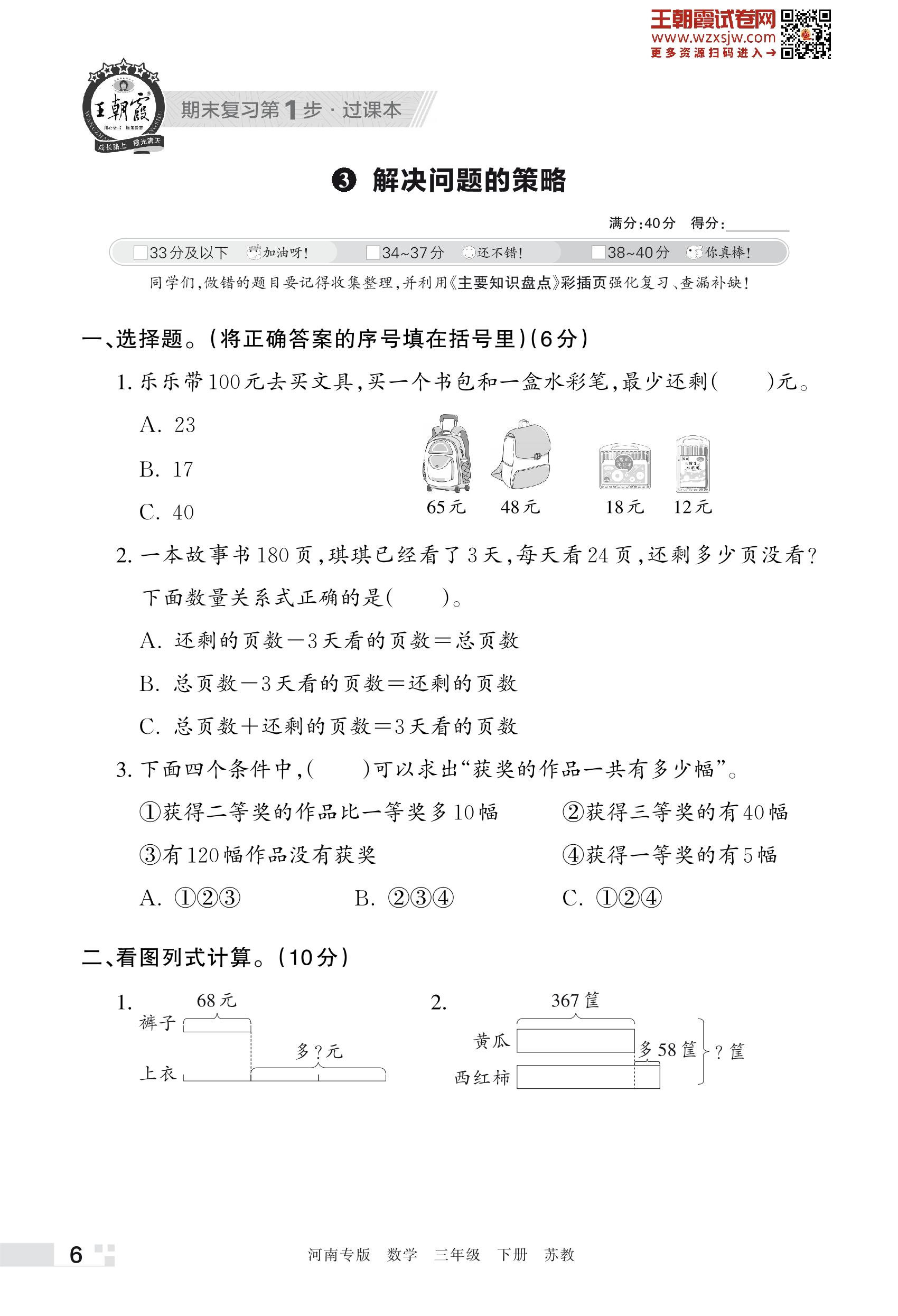 王朝霞期末过课本——3 解决问题的策略三年级下册数学(苏教版)_R230428134244923