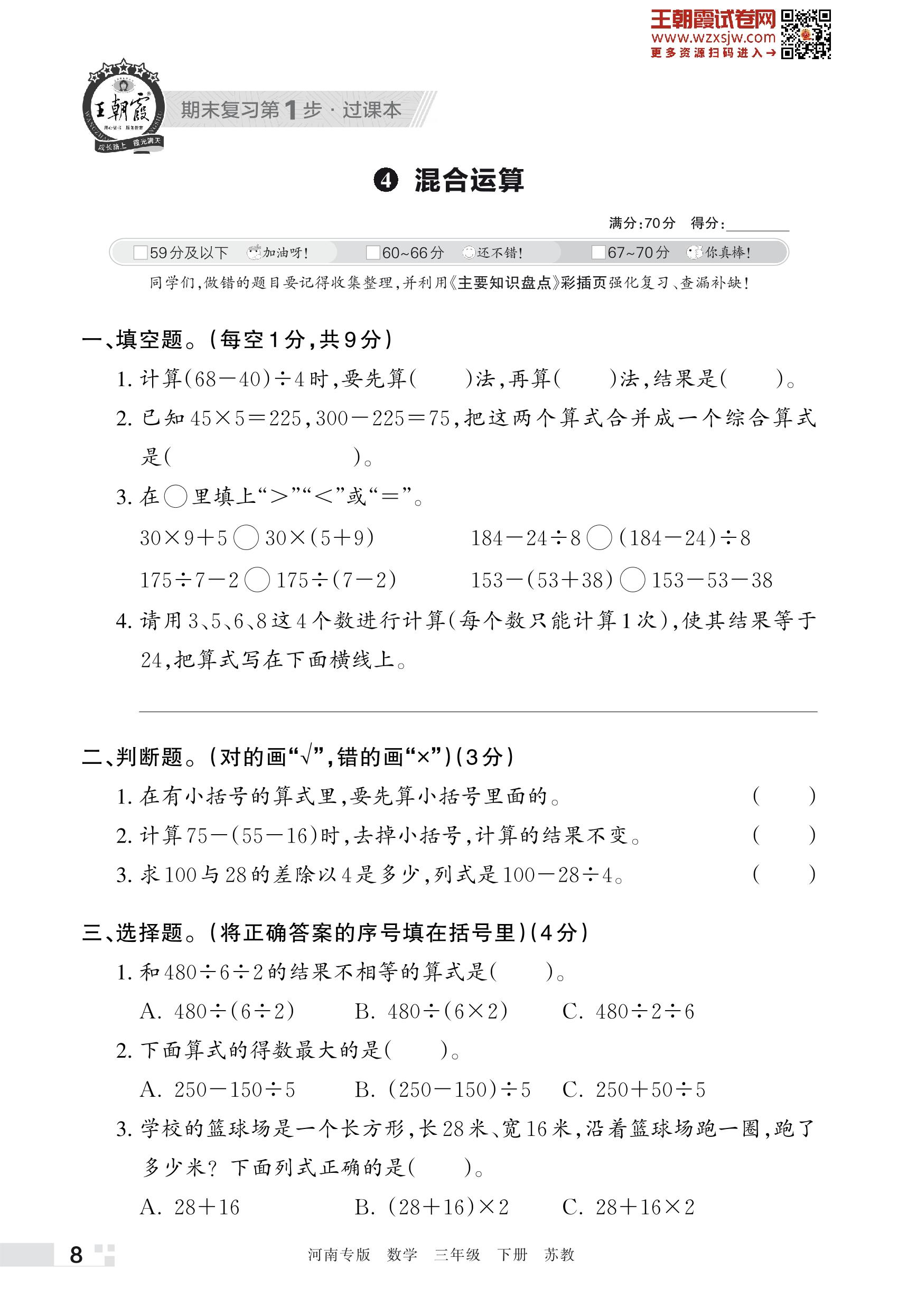 王朝霞期末过课本——4 混合运算三年级下册数学(苏教版)_R230428134244581