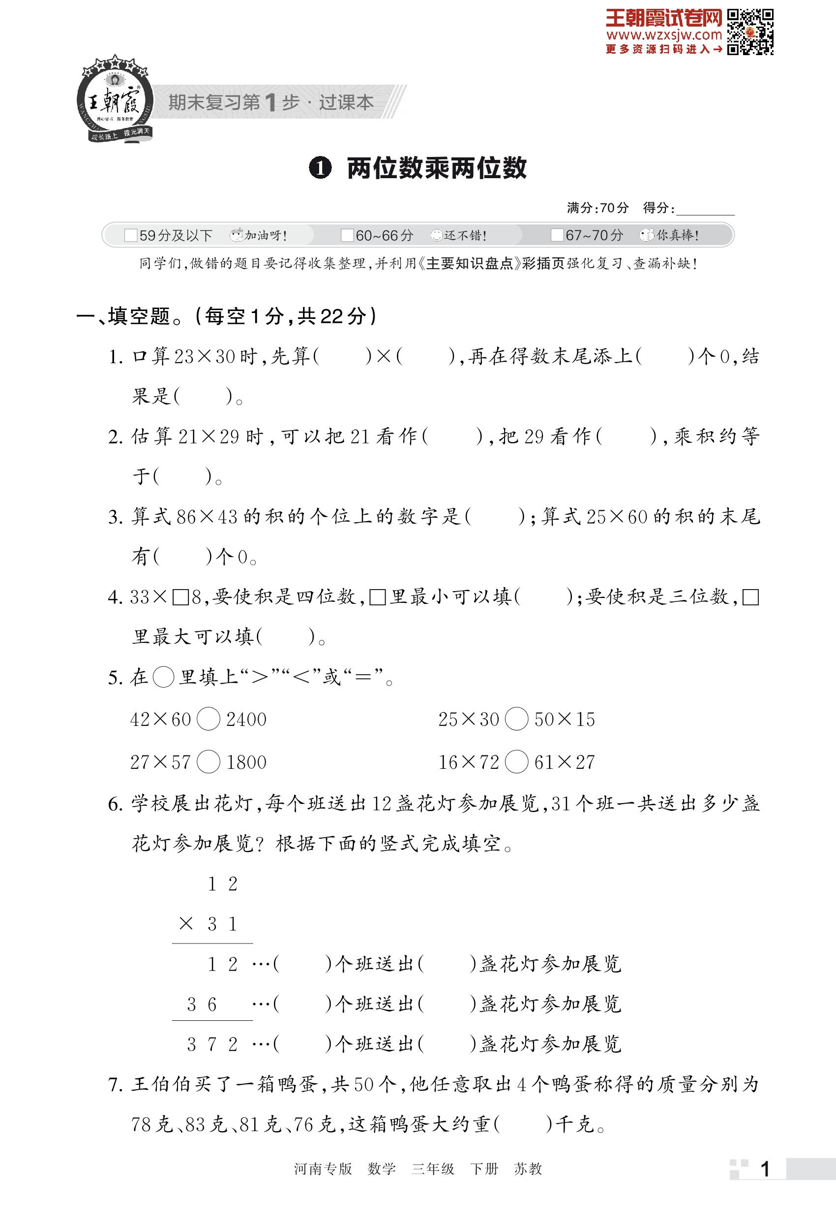 王朝霞期末过课本——1 两位数乘两位数三年级下册数学(苏教版)_R230428134245661