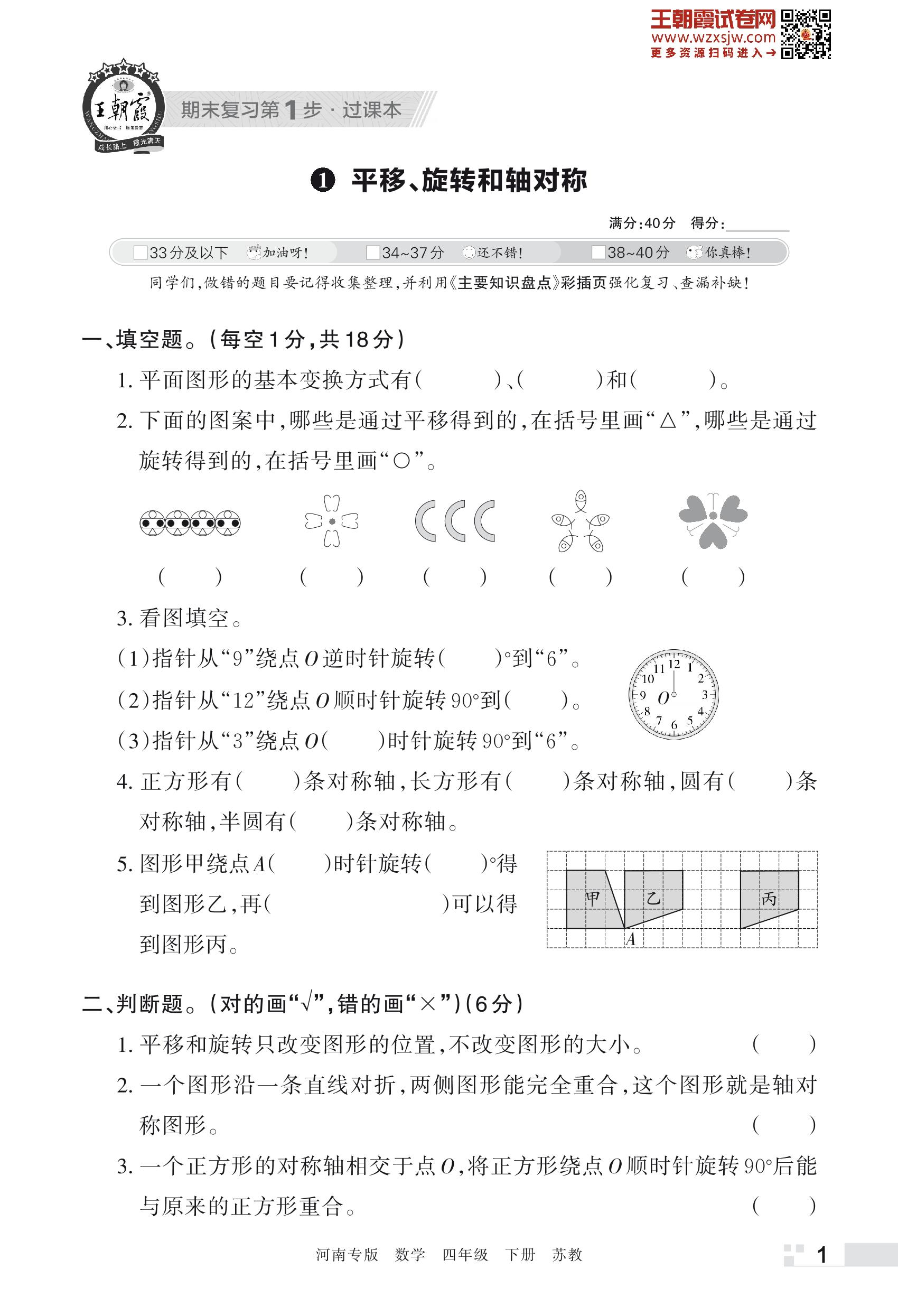 王朝霞期末过课本——1 平移、旋转和轴对称四年级下册数学(苏教版)_R230428134914989