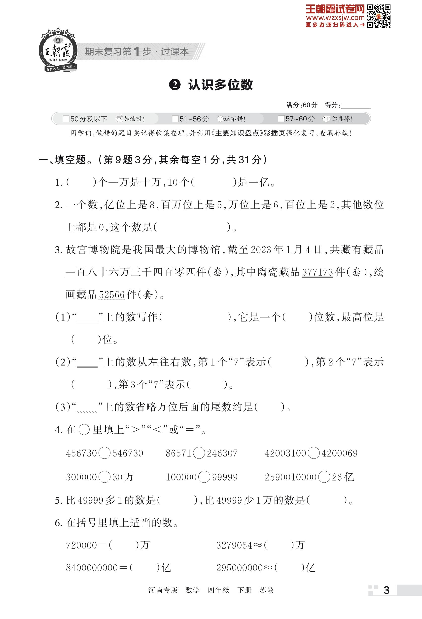 王朝霞期末过课本——2 认识多位数四年级下册数学(苏教版)_R230428134914508