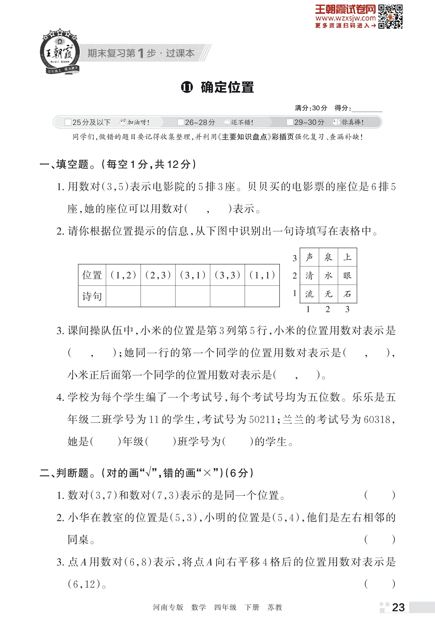 王朝霞期末过课本——11 确定位置四年级下册数学(苏教版)_R230428134914366