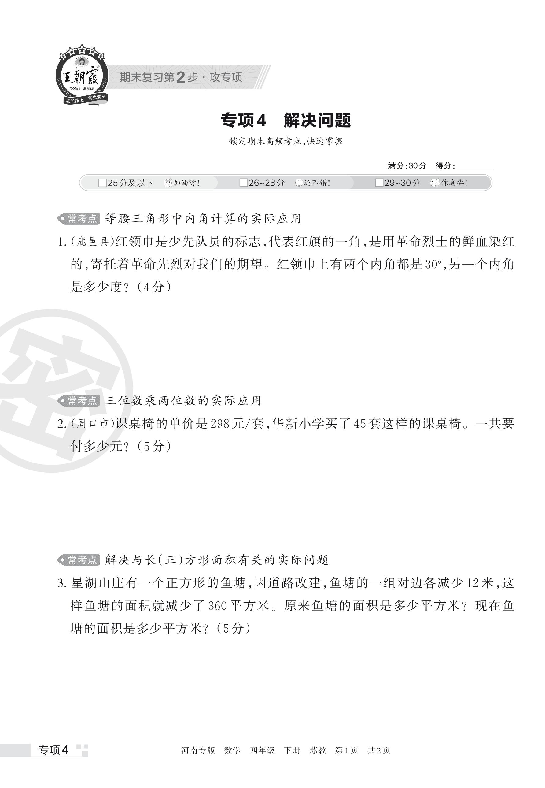 王朝霞期末专项卷——解决问题四年级下册数学(苏教版)_R230428134915903【4】