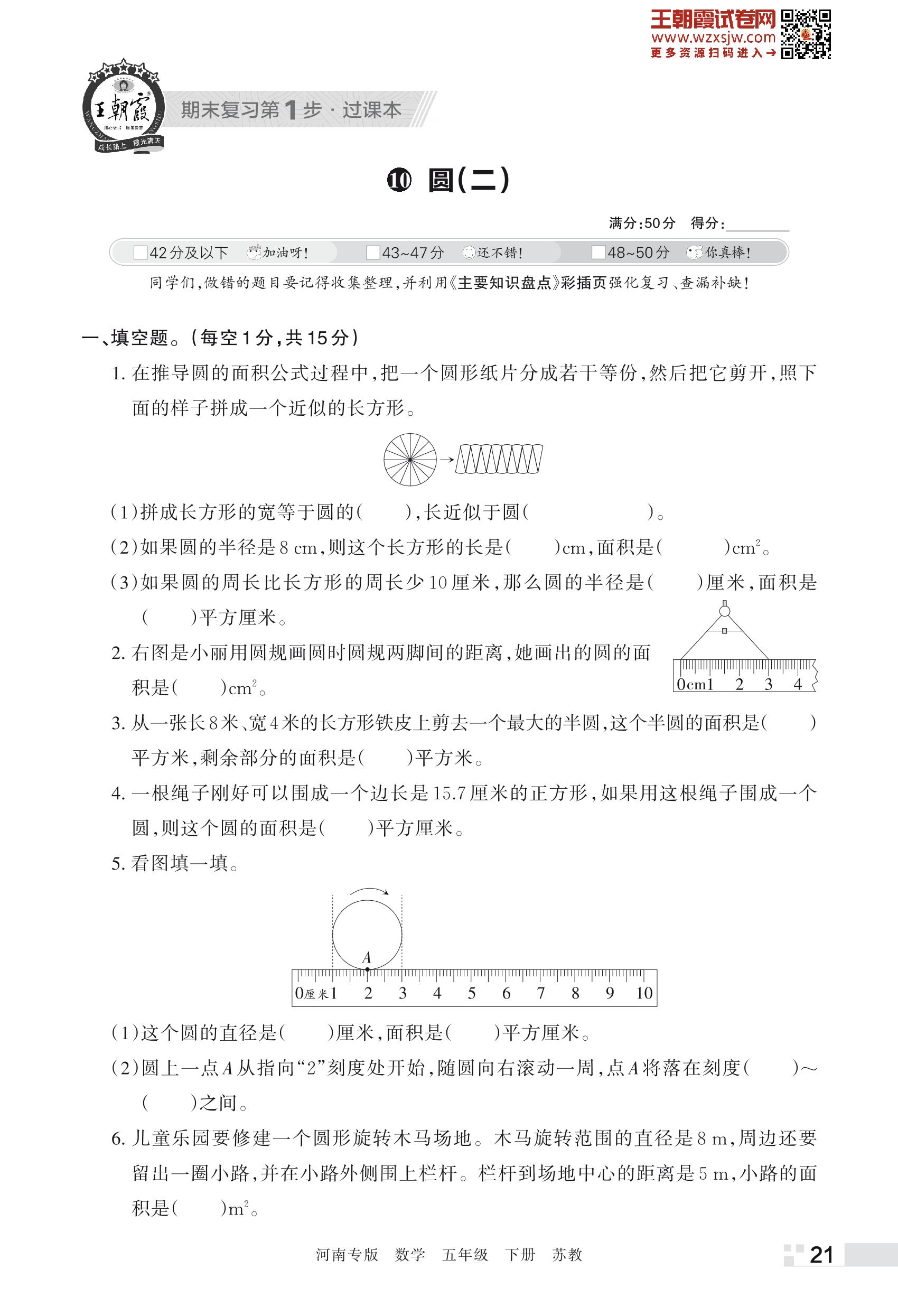 王朝霞期末过课本——10 圆(二)五年级下册数学(苏教版)_R230428140100015