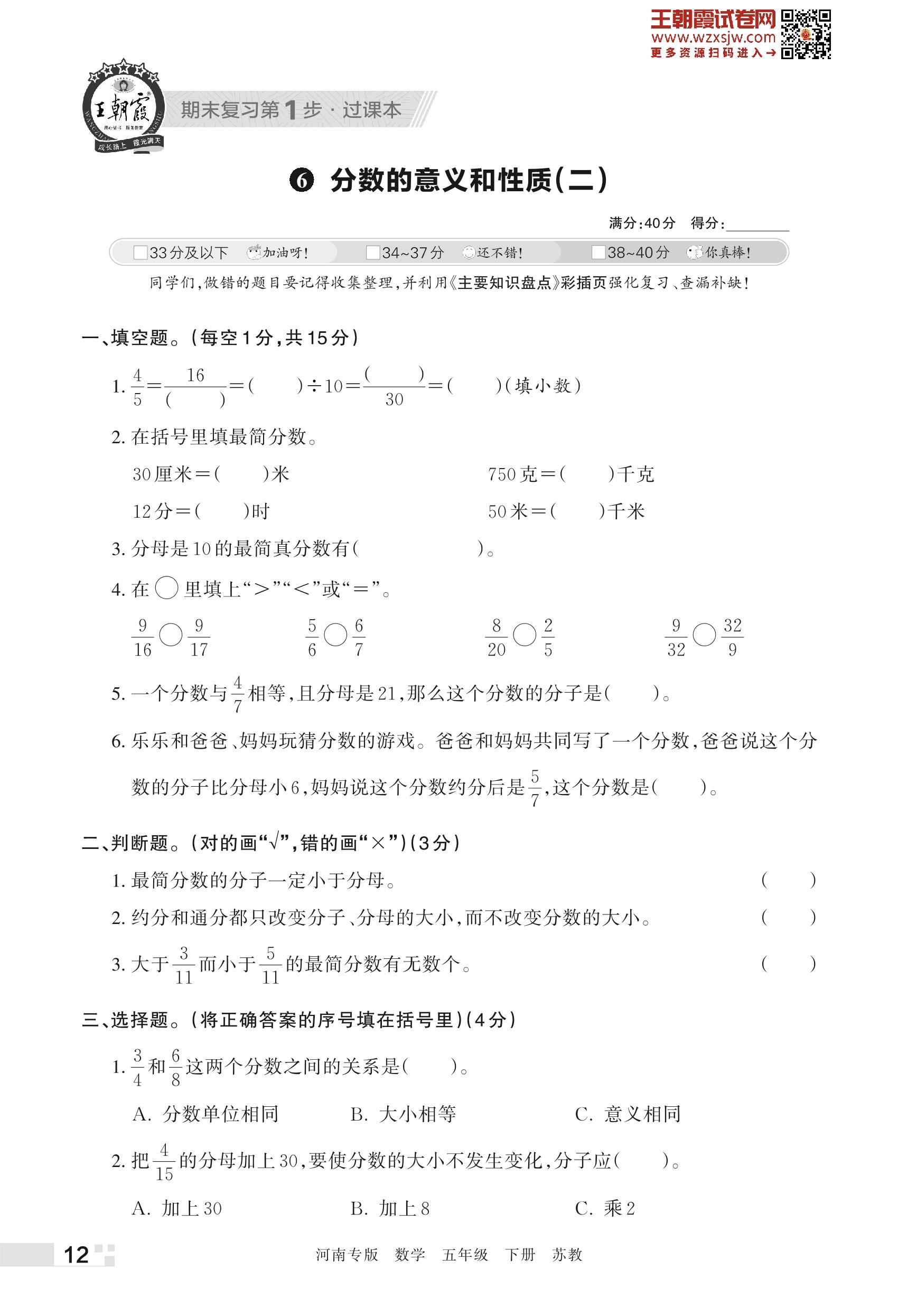 王朝霞期末过课本——6 分数的意义和性质(二)五年级下册数学(苏教版)_R230428140101870