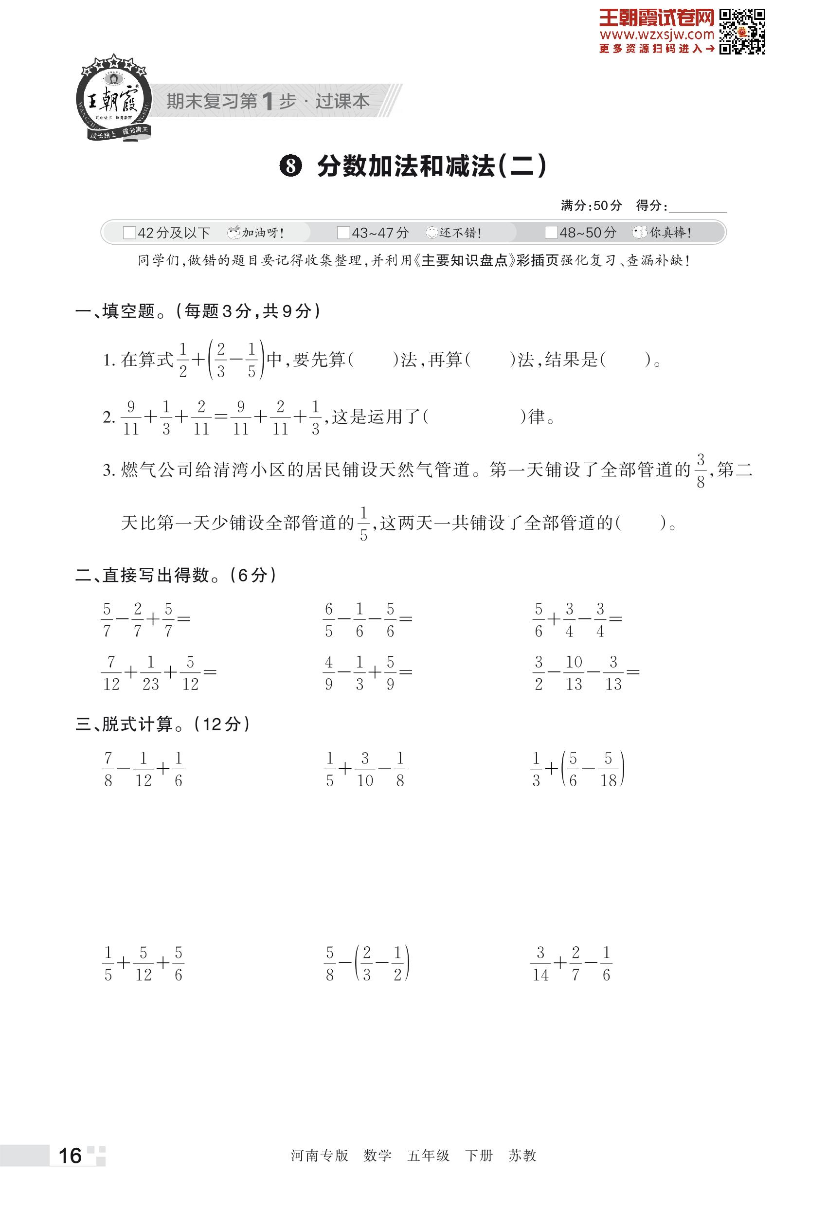 王朝霞期末过课本——8 分数加法和减法(二)五年级下册数学(苏教版)_R230428140101738