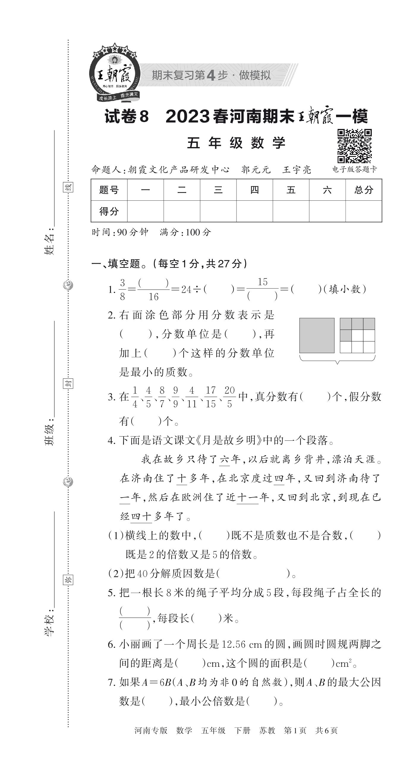 王朝霞期末模拟卷五年级下册数学(苏教版)_R230428140103478【8】