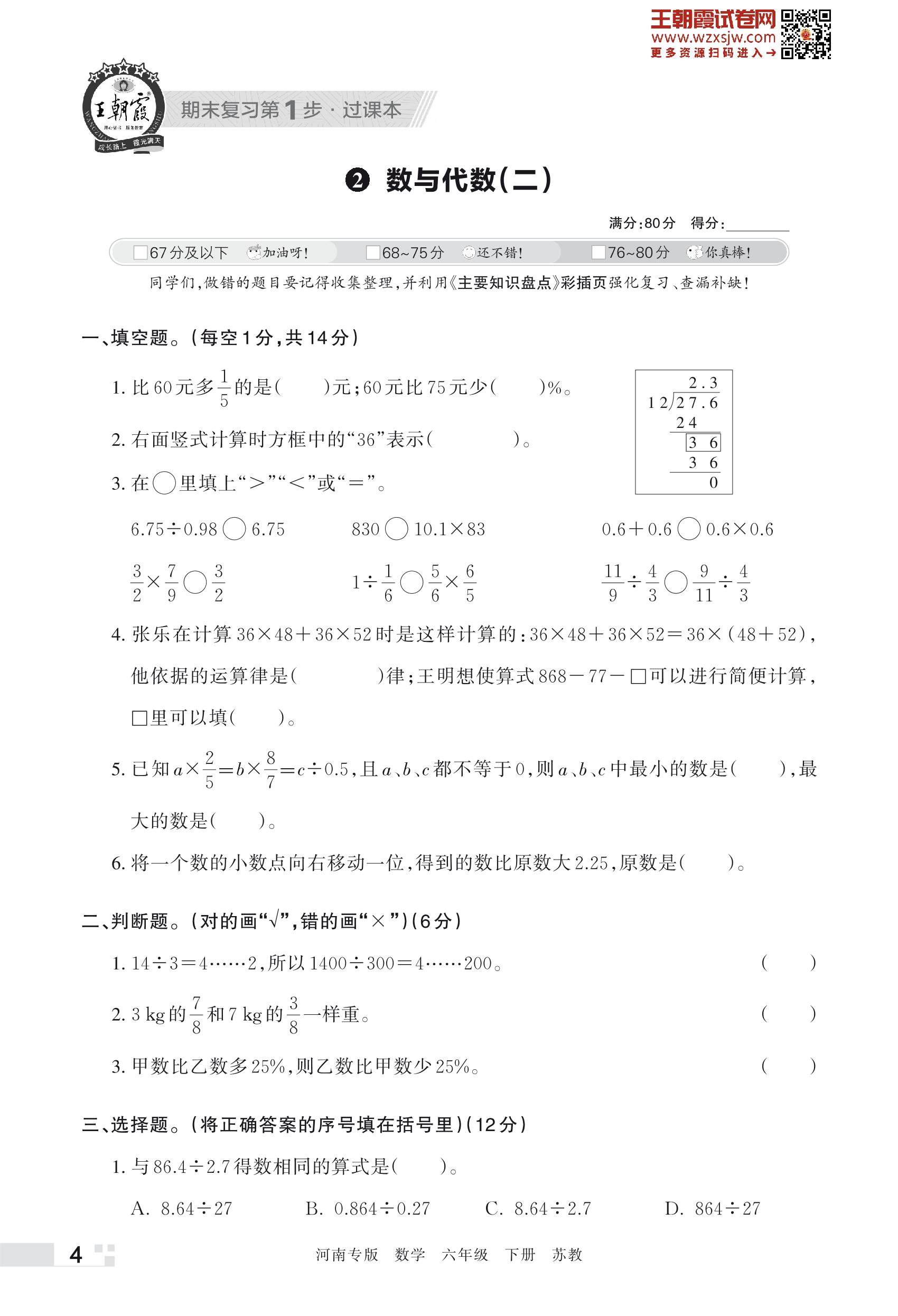 王朝霞期末过课本——2 数与代数(二)六年级下册数学(苏教版)_R230428140707051