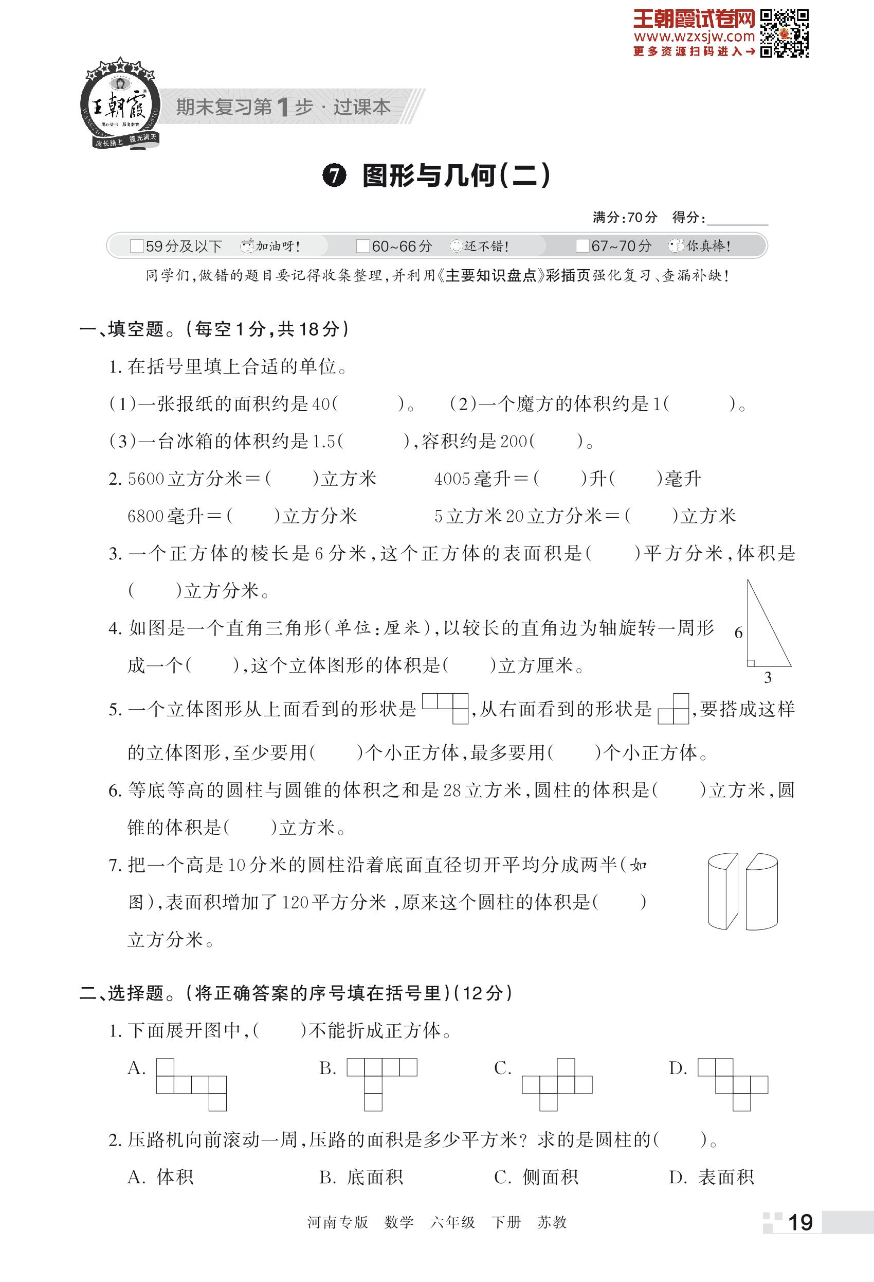 王朝霞期末过课本——7 图形与几何(二)六年级下册数学(苏教版)_R230428140708227