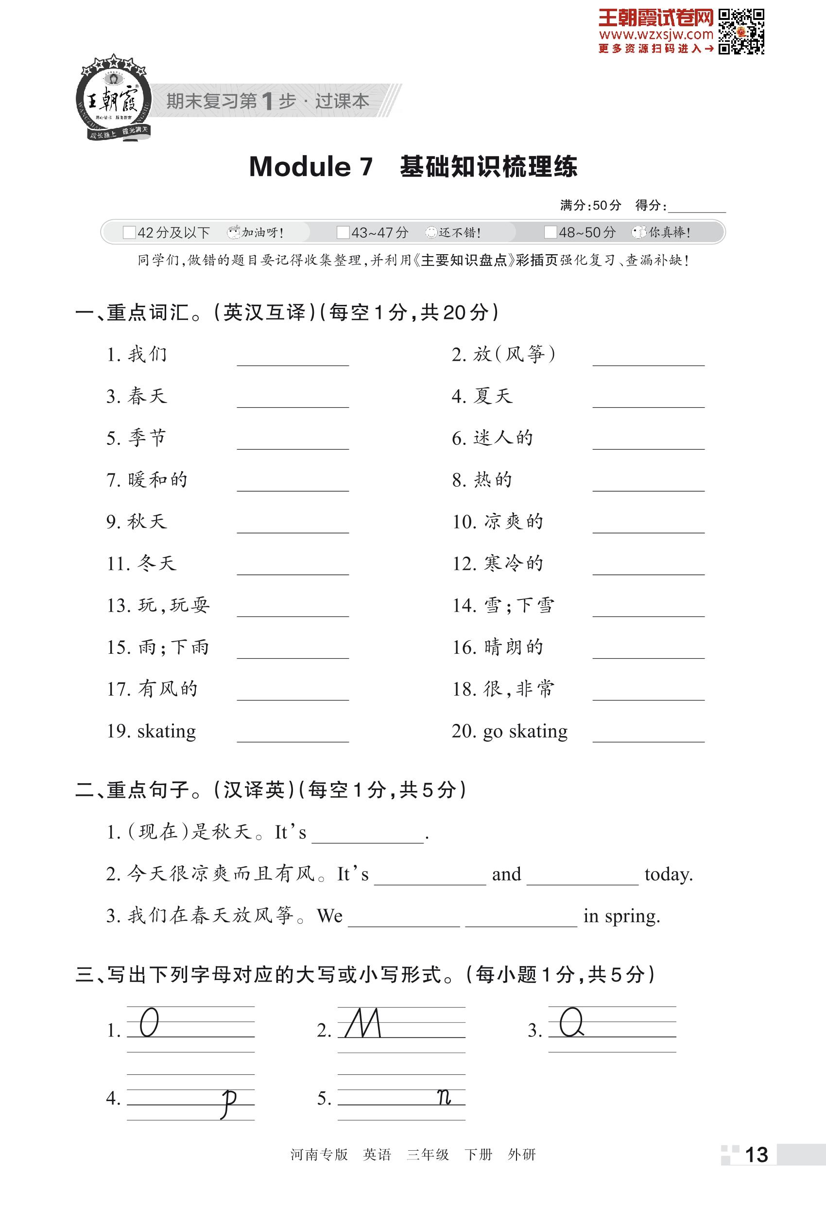 王朝霞期末过课本——Module 7 基础知识梳理练三年级下册英语(外研版)_R230428141329252